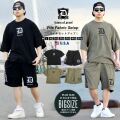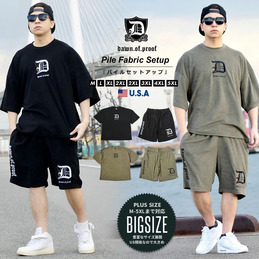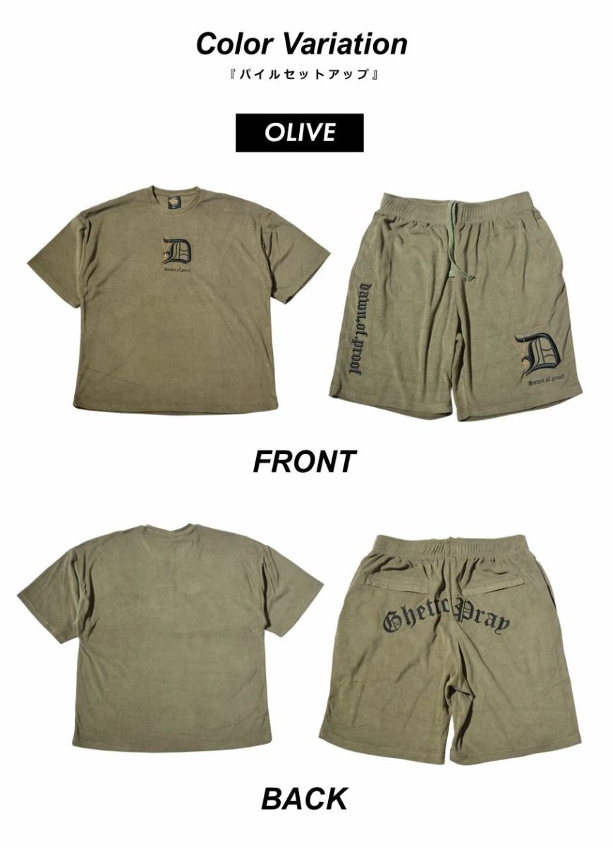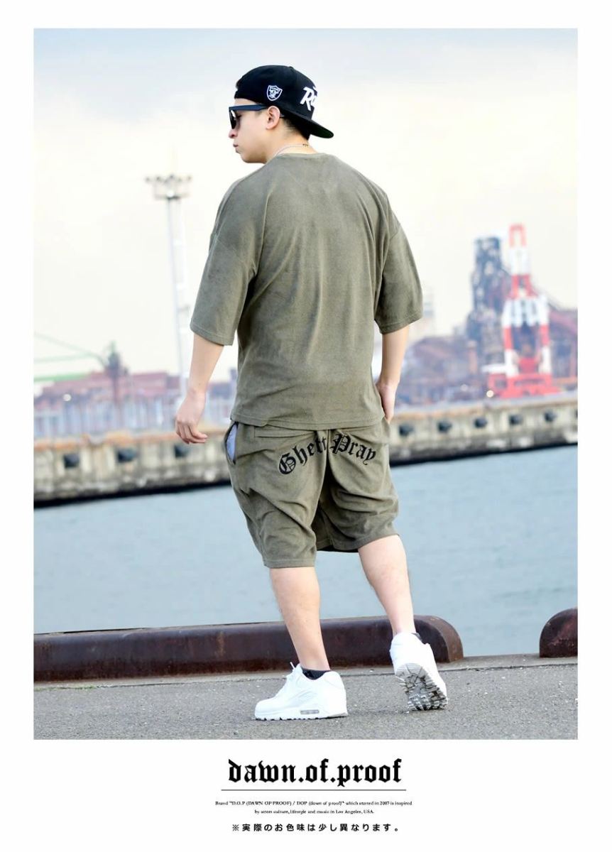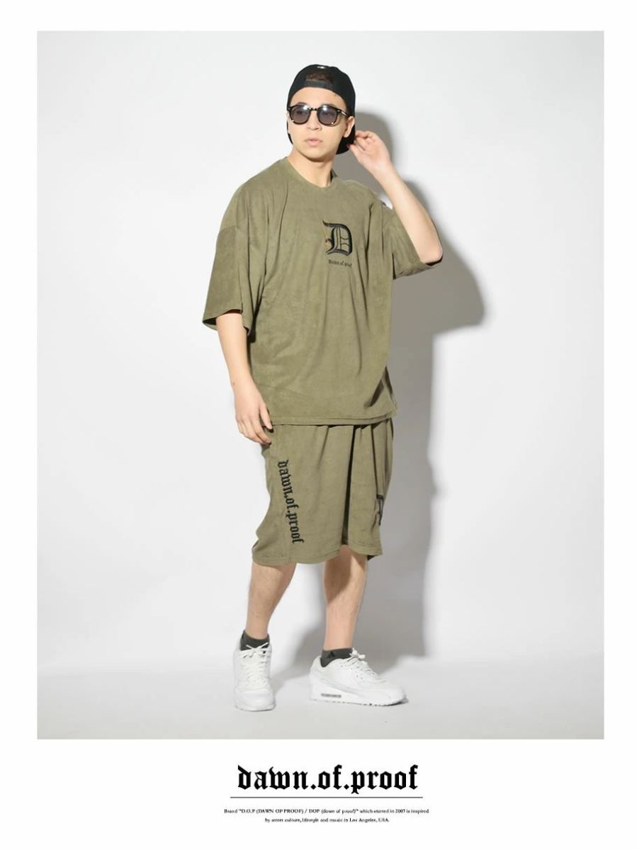 見た目にも清涼感のある、軽量で肌触りも柔らかい、ふわっとしたタオルの様なパイル生地を使った、暑い夏にもピッタリなリラックス感溢れるパイルTシャツとパイルショーツの上下セット! ブランドロゴやワードを刺繍したシンプルだけどエッジの効いた90年代西海岸ストリートを思わせるハードなデザインと、旬のビッグシルエットを楽しめるダボッとしたオーバーサイズなワイド&ルーズシルエットが魅力的。 リラックスしたお家時間を過ごす部屋着・ルームウェアとしては勿論、スポーツ、ジム通い、ダンスなどのアクティブシーン、コンビニなどのちょっとしたお出かけ時にも大活躍! 春夏コーデのベースアイテムとして他のアイテムと合わせた着こなしにもオススメな、スタイリングの幅も広がる万能サマーセットアップです。 ブランド:DOP(ディーオーピー) 型番:DPST180 素材:コットン(綿)80% ポリエステル20% サイズ:M , L , XL(2L) , 2XL(3L) , 3XL(4L) , 4XL(5L) , 5XL(6L) カラー:ブラック(黒) , オリーブ(緑) 着用モデル:(MEN)173cm 70kg Lサイズ ※ご注意事項※ DOP製品はかなり大きめのサイズ感の為、普段の服より1~2サイズ下を推奨します。