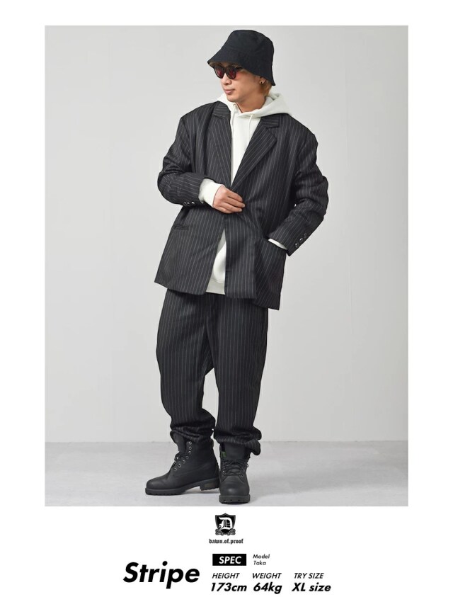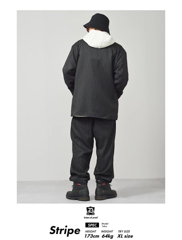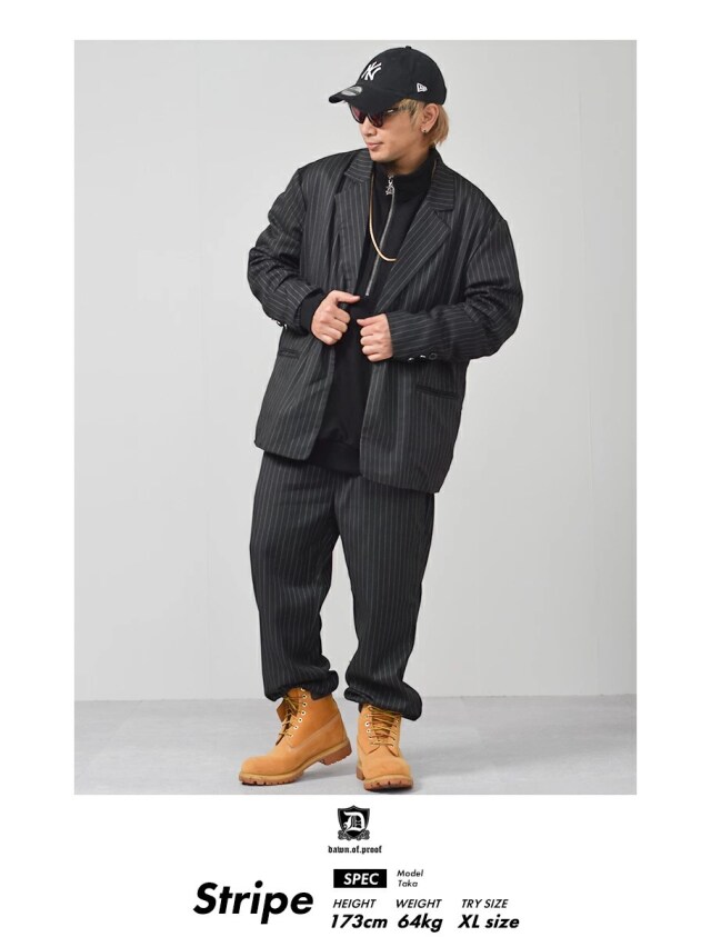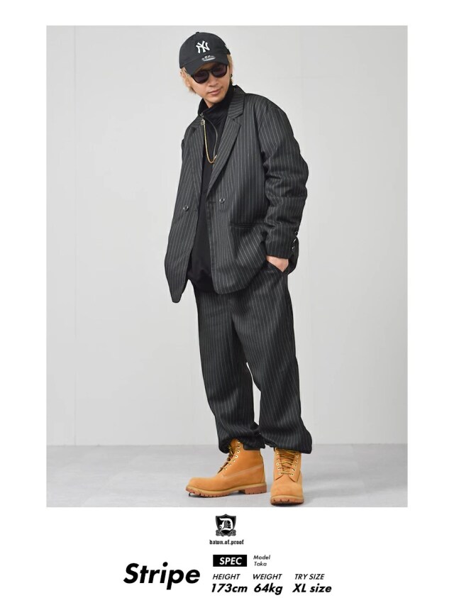 LAの90年代ストリートカルチャーをインスパイアしたドープなアイテムを展開する人気ブランド"D.O.P(DAWN OF PROOF)"からトレンド感のあるビッグシルエットに仕上げたオーバーサイズセットアップが登場。 男の色気が滲み出るルードな雰囲気のピンストライプデザインに仕上げたテーラードジャケットとワイドパンツのセットアップ。 オーバーサイズ×ドロップショルダーによるストリートなエッセンスを放つキレイめでありながらもカジュアルに羽織れるジャケット。 ウエスト、裾回りにフィット感を調節できるドローコードを備えたイージーパンツ仕様のワイドパンツ。 今っぽさのあるシルエット&デザインに加え、上下のどちらも単体でコーディネートに組み込みやすいので、セットアップスタイルだけでなく、コーディネートの幅が広がるアイテムとなっています。 DOP ディーオーピー セットアップ 上下セット スーツ スマートカジュアル ストリート B系 ブランド おしゃれ AW FW 秋 冬 秋冬 メンズ レディース ユニセックス アパレル 洋服 服 ギフト プレゼント トレンド 流行 おすすめ 10代 20代 30代 40代 50代