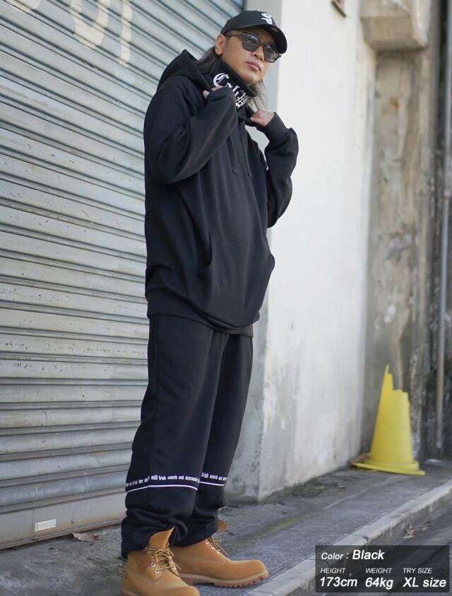 90年代アメリカ西海岸ストリートカルチャーを現代へと落とし込むブラック系ファッションで人気のLAストリートブランド『DOP(ディーオーピー)』のスタンドカラースウェットセットアップ。 ネックウォーマーとしても機能する厚手のリブをネック部分に落とし込み、今期トレンドのスタンドカラーへとカスタムしたプルオーバーパーカーとゆったりとしたワイドシルエットのスウェットパンツを合わせた、1アイテムで旬のストリートコーデを演出してくれる上下セット。 ネック部分、背中、足元にはDOPらしいLAストリートを彷彿させるメッセージデザインを落とし込み、シンプルでありながらもエッジの効いたスタイルを演出。 上下合わせたセットアップスタイルは勿論、旬なオーバーサイズのパーカーとワイドなスウェットパンツはそれぞれ単体でもコーデに組み込めるので着こなしの幅も広がります。 素材は肉厚な裏毛仕様のヘビーウェイトスウェット素材を使用し、春・秋・冬とロングシーズン活躍してくれるアイテムに仕上がっている。 ・ゴムウエスト×紐でフィット感を調整可能なイージーパンツ仕様 ・パンツ裾にも絞り用ドローコードを搭載