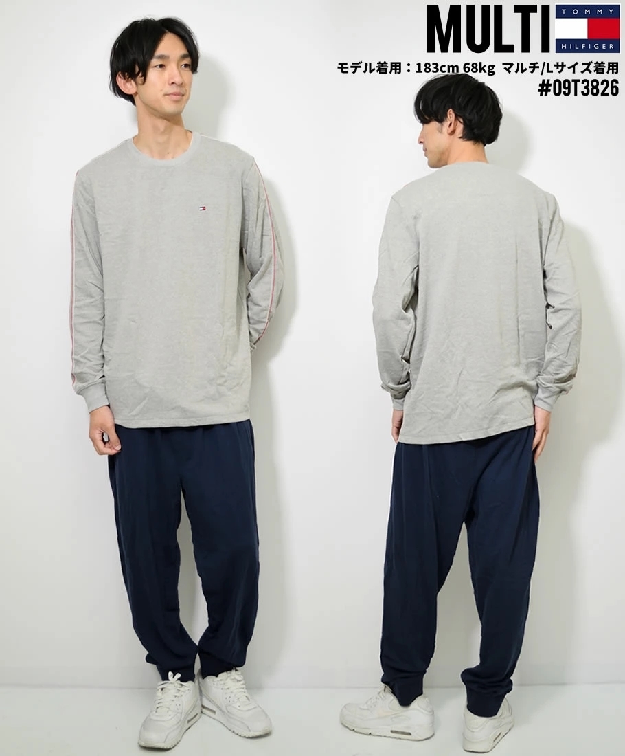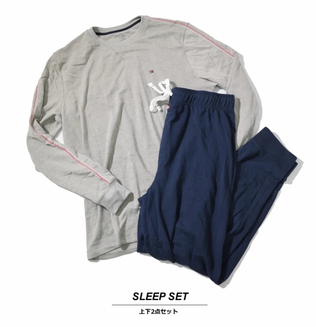 海外限定販売となる日本未発売のTOMMY HILFIGER USAコレクションのスリープウェアラインから、デイリーに使えるセットアップが登場。 薄手のスウェット感覚で着れる、軽くて柔らかな肌触りの上質なフレンチテリーコットン生地を使用した、リラックスした着心地を楽しめるクルーネックシャツとパンツの上下セット。 ルームウェアやパジャマなど家着としては勿論、近所のコンビニなどちょっとした外出時にもオシャレに着れる、フラッグロゴ刺繍がワンポイントで入ったシンプルで上品なTOMMY HILFIGERらしいカジュアルなデザイン。 ご自身用は勿論、ご家族やカップルでのペアルックやお揃いコーデにもオススメな、男女問わず愛用できるプレゼントにもピッタリなアイテムです。 ※ご注意事項※ こちらはアメリカ正規モデルの並行輸入となります。 日本モデルと比較して大きめのサイズ感の為、普段のお洋服より1~2サイズ下がオススメです。 ■ブランド TOMMY HILFIGER(トミー ヒルフィガー) ■メーカー型番 09T3826 ■素材 (トップス)コットン(綿)60% ポリエステル40% (ボトムス)コットン(綿)100% ■モデル メンズ:183cm│68kg│Lサイズ着用