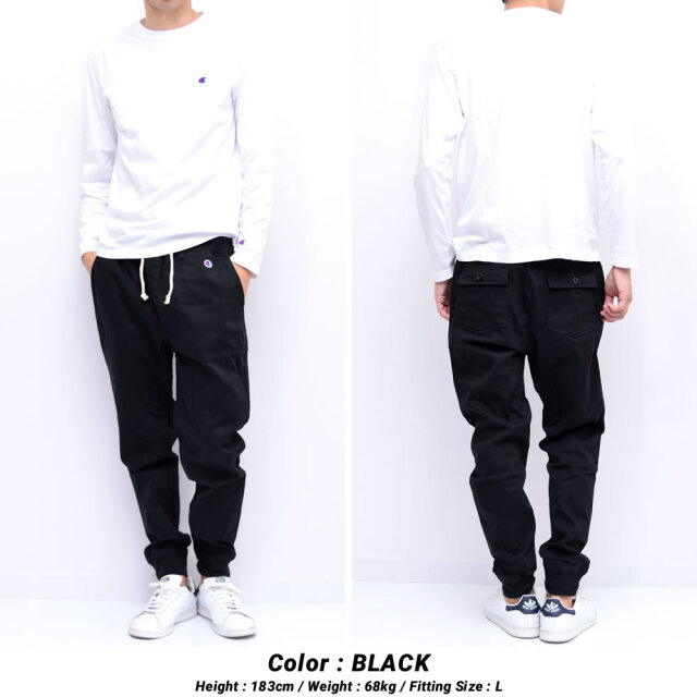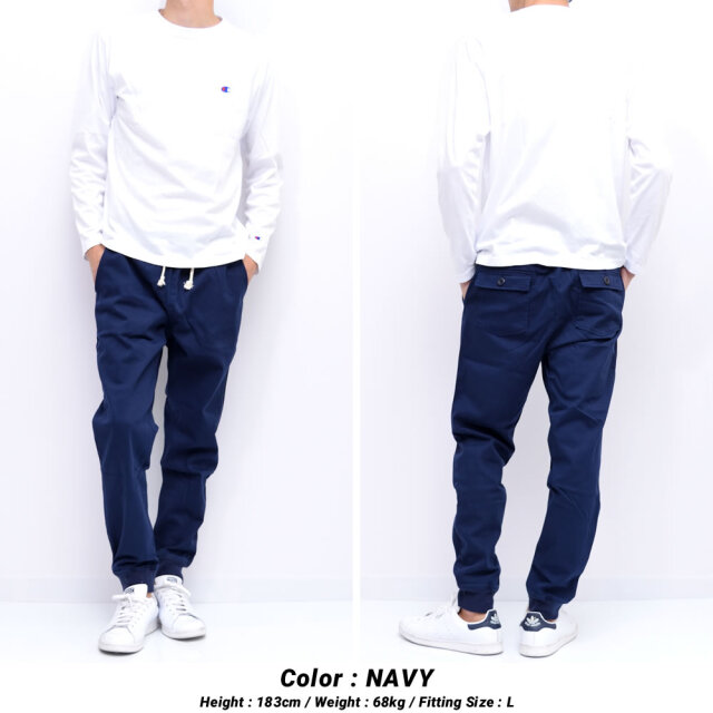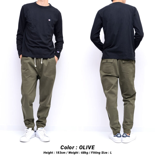 スポーツやアクティブ時にも動きを妨げない伸縮性に富んだストレッチツイル素材を使用した、ストレスの無い快適な穿き心地を楽しめる大人気ジョガーパンツ。 ガーメントウォッシュ加工を施したナチュラルなユーズド感がある風合い豊かな表情の生地感や、ベイカーパンツを彷彿させる大振りなフロントポケット、ワンポイントに入ったミニマムなCロゴパッチなど、ワークなエッセンスをミックスしたモダンシンプルデザイン。 裾口はリブ仕様でワタリから裾に掛けて細くなるスタイリッシュなテーパードシルエットで、王道のアメカジからトレンドのスポーツミックスやアスレジャー、ストリートな装いにと、様々なコーディネートに合わせてデイリーに使える汎用性抜群なアイテム。 ウエストもリブ&ドローコード仕様でフィット感を自由に調節できるイージーパンツスタイルで、スタイリッシュな見た目ながらもリラックスして穿ける楽ちん仕様も魅力。 カラー : ブラック , ネイビー , ベージュ , オリーブ サイズ : M , L , XL , 2XL 素材 : 【本体】コットン(綿)98% ポリウレタン2% 【リブ部分】コットン(綿)100% モデル : 【メンズ】身長183cm 体重68kg Lサイズ着用