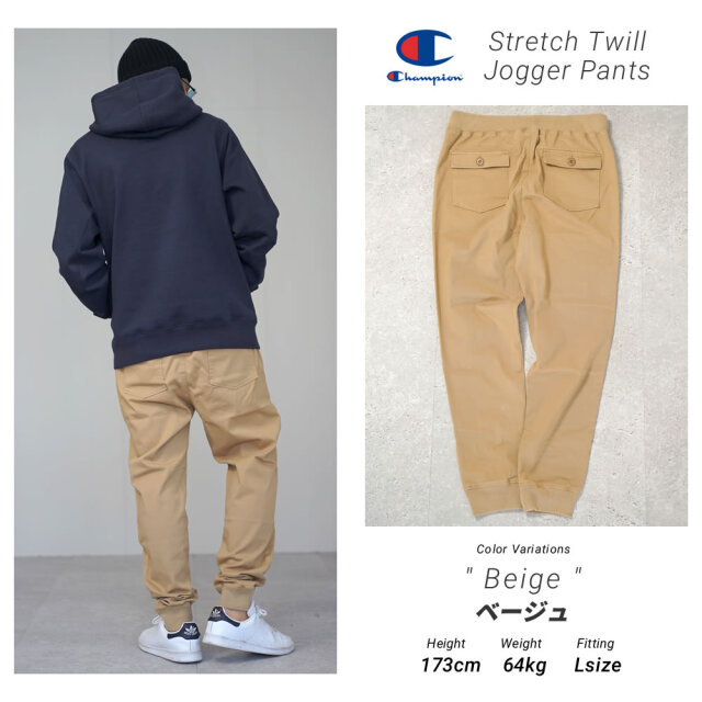 動きを妨げない伸縮性抜群なストレッチツイル素材を使い、ストレス無く快適にリラックスして穿けるジョガーパンツスタイルのチノパン。 ガーメントウォッシュ加工を施した自然なユーズド感がある風合いの良い生地の表情や、ベイカーパンツを彷彿させる大振りなフロントポケット、ミニマムなCロゴパッチのワンポイントがアクセントになった、ワークミックスなモダンシンプルデザイン。 腿周りはゆったりとしつつも裾に掛けて細くなるスタイリッシュな裾リブ仕様のテーパードシルエット。 王道のアメカジからゴルフ、スポーツ、ストリートな装いにと、スタイルを選ばずコーディネート可能な万能アイテム。 ウエストもリブ&ドローコード仕様でフィット感を調節できるイージーパンツタイプでベルトレスで楽ちんに穿けるのも魅力です。 【サイズ】ウエスト│股下│わたり│裾幅 M│76-84cm│71.5cm│30.5cm│11cm L│84-94cm│73.5cm│32cm│12cm XL│94-104cm│75.5cm│33.5cm│13cm サイズはアメリカ企画ではなく日本企画サイズです。 【素材】 コットン(綿)98% ポリウレタン2%