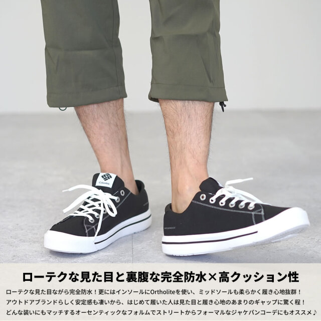 普段履きにもピッタリなスタイリッシュなデザインに加え、防水性が高いだけでなく通気性も良く快適に履けることで多くのファンを獲得している、コロンビアの代名詞的アイテムの一つであるレインスニーカー「ホーソンレイン3」のローカットモデル。 雨や水はねを防ぐ圧倒的な撥水性に加え、シューズ内への浸透を防ぐ優れた防水性で、梅雨や夏の夕立対策や釣りや川辺の散策などアウトドアアクティブにピッタリ! キャンバス調素材を使ったかわいいローテクな見た目と"防水"と聞くと履き心地はどうなの?と思われがちですが、 ・クッション性抜群のミッドソール ・クッション性と通気性に優れた「Outholite(オーソライト)」を使用したインソール ・ドライなコンディションでも濡れた路面でも高いグリップ力のアウトソール により、長時間でも快適さを保つ、歩くのが楽しくなる心地良さを実現。 晴雨兼用で使えてタウンユースなデザインで、デイキャンプを愛するアウトドア好きから、「ジャケパン×スニーカー」が定番可してきたニューノーマル時代のビジネスマンの仕事靴としても高レビューを集める大人気防水スニーカーの2023年最新版を是非♪