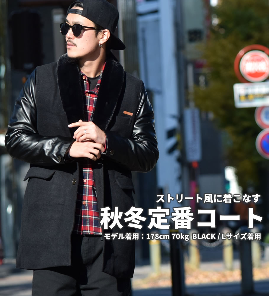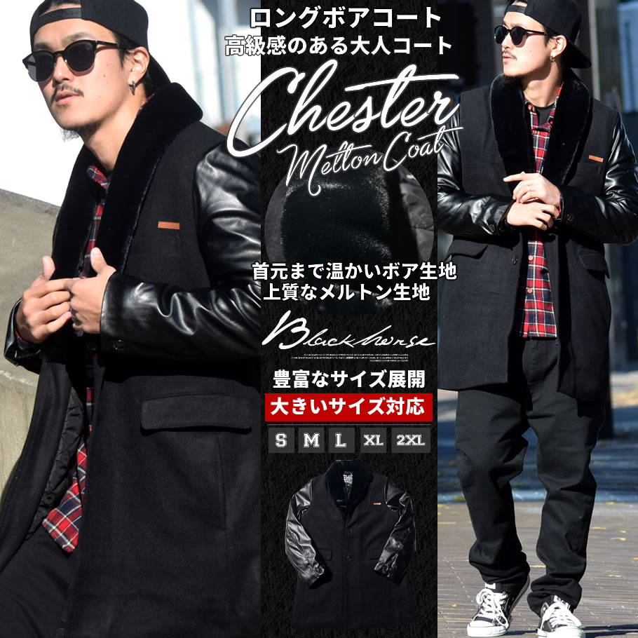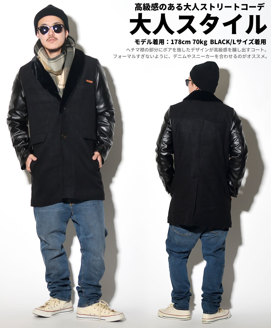 | 製品名: | BLACK HORSE ブラックホース チェスターコート ロング丈 レザー メルトン ストリート系 カジュアル B系 ファッション BHJT026 |