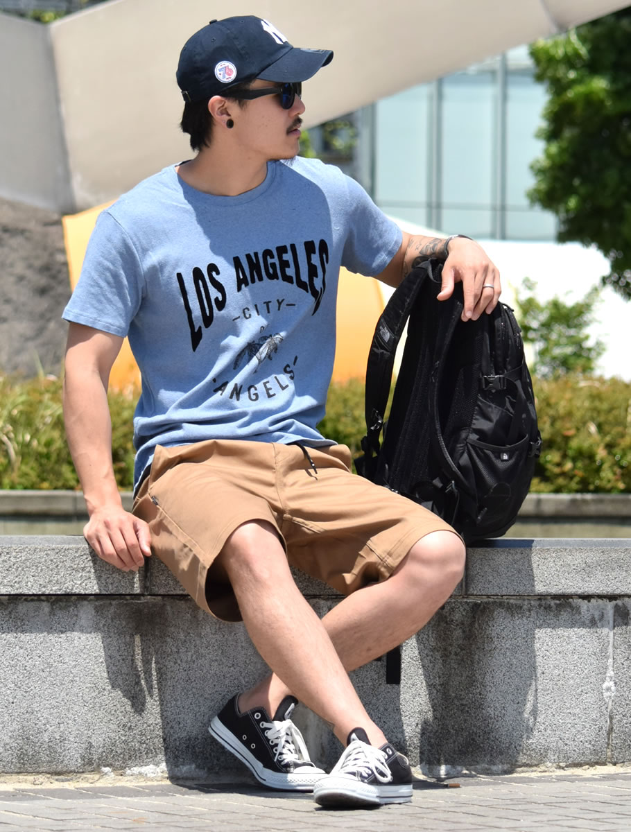ヴィンテージTシャツの様なこなれ感のある杢カラーのコットンボディに、西海岸リゾートテイストなLOS ANGELESロゴをフロッキー×インクジェットプリントで立体感や微妙な色味まで表現した表情豊かなデザインTシャツ。肌触りの良い洗いを掛けた柔らかなコットンボディは暑い夏にも爽やかに着こなせる。アメカジなスタイリングに是非押さえて欲しい、雰囲気抜群の一枚です。【ブランド】BLACK HORSE(ブラックホース)【型番】BHTT019【素材】コットン100%【サイズ】着丈│身幅│肩幅│袖丈(cm)【S】67│47│41│19【M】69│50│43│20【L】71│53│45│21【XL】73│56│47│22【2XL】75│59│49│23【モデル】身長│体重│着用サイズ【メンズ】178cm│70kg│Lサイズ