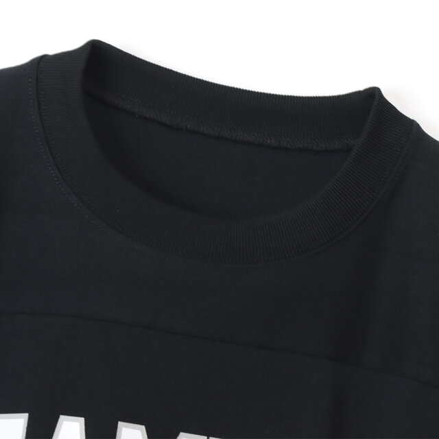 環境に配慮して生産されたアメリカ綿「コットンUSA」と、同じく地球環境に配慮されたリサイクルポリエステルを使用した、SDGsを意識したエシカルでありつつオシャレなサスティナブルファッションを楽しめるフットボールTシャツ。 サスティナブル素材でありながらもヘビーウェイトで高密度なガシッとした生地感。それでいて肌当たりはソフトな風合いに仕上がっており快適な着心地とアメリカンクラシックな見た目を両立してるのも魅力。 肩接ぎがなくヨーク部分で切り替えた肩回りや、カレッジなロゴ、袖のラインデザインと、フットボールTシャツを定義付ける王道のデザインに加え、昨今のトレンドに合わせたゆったりとしたリラックスフィットのシルエットで旬なスポーツミックスコーデを演出してくれます。 アクションスタイルらしい裾に配したジョックタグのアクセントも効いた、今のストリートのエッセンスを存分に加えたニュートロデザインに仕上がった一着。 ■サイズ│着丈│身幅│肩幅│袖丈 M│69cm│56cm│51cm│25.5cm L│72cm│58cm│53cm│26.5cm XL│75cm│60cm│55cm│27.5cm ■素材 コットン(綿)50% ポリエステル50%