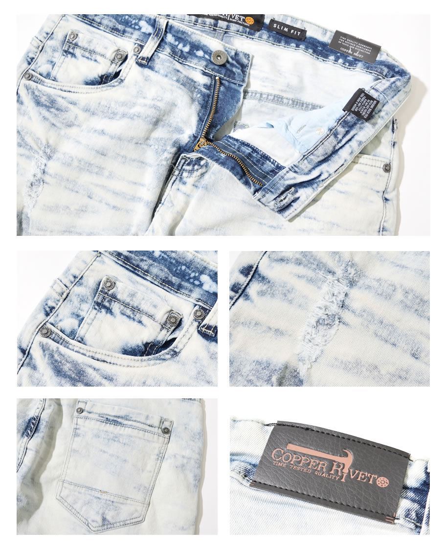 トレンドを捉えたシルエットとデザインながらも手頃な価格帯を実現したコストパフォーマンスの高さで、今多くの海外セレクトショップで取り扱われている注目のデニム・ファクトリーブランド「COPPER RIVET (コッパーリベット)」のダメージデニムショーツ。 風合い抜群なウォッシュドカラーに、クラッシュ、ダメージ加工で表情を加えたCOPPER RIVETのクラシカルデザイン。 デニムフリークなら気になるボタンやリベット、革パッチやポケットデザインなど細部にまで拘られた造形は低価格帯とは思えない完成度となっています。 シルエットも現代のトレンドに合わせた美しいスリムフィット×オン膝丈で、カジュアルからストリート、キレイめなアイテムにまで幅広いコーディネートに合わせていただけます。 伸縮性素材を混紡したストレッチデニム生地なので穿き心地もストレスフリーで快適です。 カラー : ダメージブルー , ブラック , ブルー サイズ : 32インチ , 34インチ , 36インチ , 40インチ , 42インチ 素材 : コットン(綿)98% , スパンデックス2% 着用モデル : (メンズ)173cm 70kg W32×L32インチ