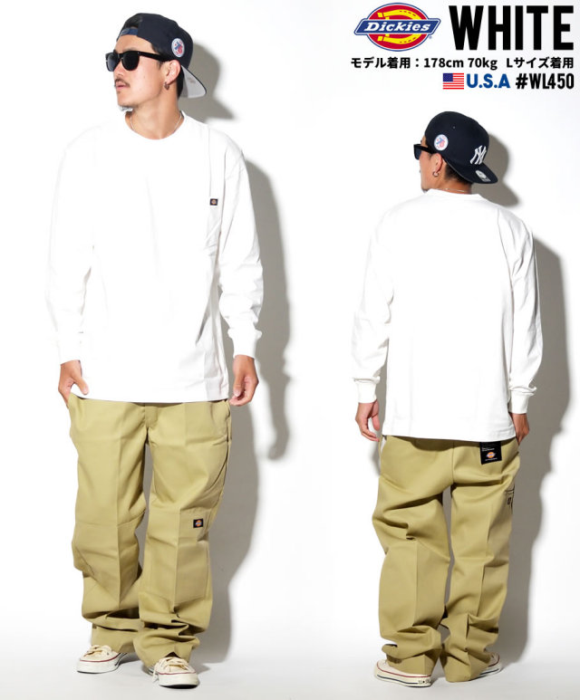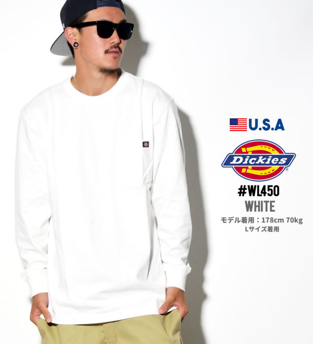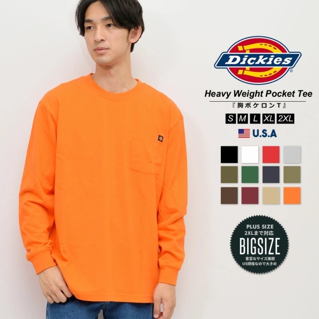 ファッションシーンでも絶大な人気を誇るワークブランド「Dickies(ディッキーズ)」の本国アメリカを中心に海外限定で販売されているUSAモデル(並行輸入)のロングスリーブTシャツ。 ブランドラベルが付いた胸ポケットが丁度良いアクセントになった、ワークディテールが効いた「シンプルだけど無地よりオシャレ」なデザインで使い勝手抜群なポケT仕様。 しっかりとしたヘビーウェイト生地を使い、長めの丈感に仕上げているので、春先や秋口に一枚でザックリと着るのは勿論、レイヤードベースとしても活躍間違いなし。 USA規格ならではのリラックス感のある旬のオーバーサイズなゆるシルエットで、ストリート、カジュアル、古着MIXと様々なスタイリングと相性抜群な、王道アメカジから今季らしいトレンドコーデにも合わせられる、着回し力の高さも魅力的。 メンズにはもちろん、ビッグシルエットとしてスト系好きなレディースにもオススメな、定番としてワードローブに備えておきたい万能ロンTです。 カラー : 全12色 サイズ : S , M , L , XL , 2XL 素材 : コットン(綿)100% モデル : 【メンズ】身長176cm 体重68kg Lサイズ着用