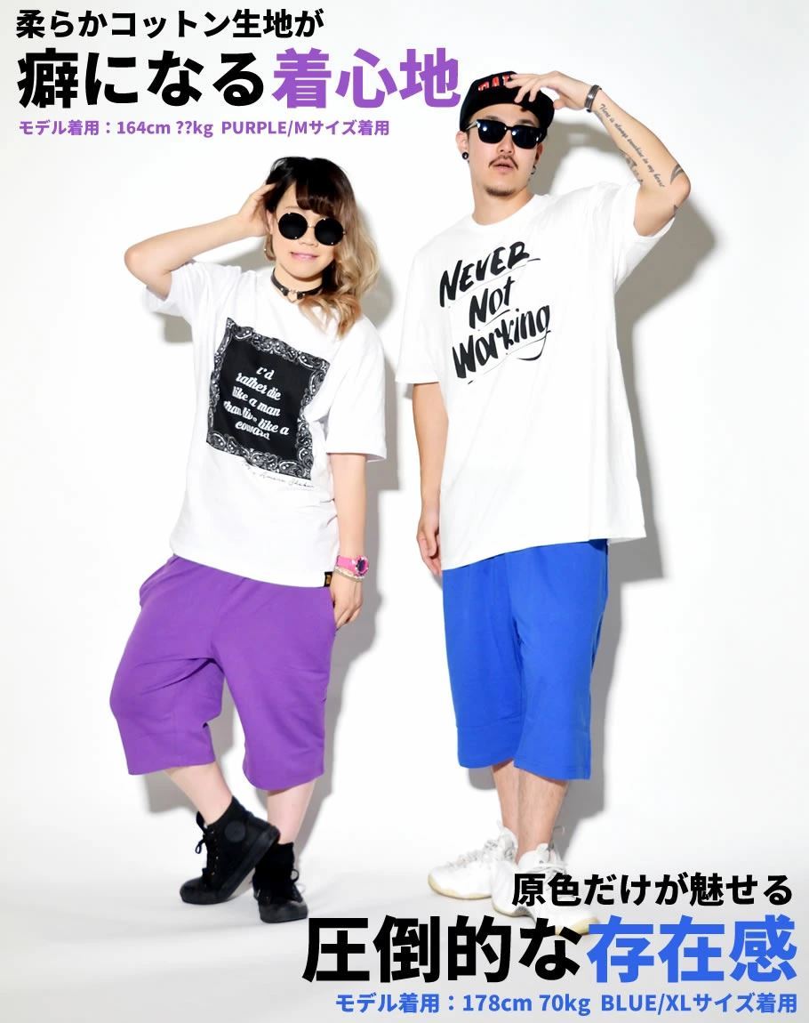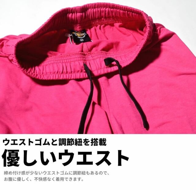 肌当たりが軽く暑い夏にも涼しく快適に着れる、上質な裏毛スウェット生地を使った定番人気の無地スウェットショートパンツ。 ルーズフィットに仕上げたゆったりとしたワイドシルエットで楽ちんな着心地で、ルームウェア、パジャマ、スポーツなどリラックスタイムやアクティブシーンに最適。 合わせるアイテムを選ばないシンプルなデザインと豊富なサイズ&カラバリでユニセックスに楽しめるベーシックなアイテムなので、カップルやお友達とのペアルックやお揃いコーデにもオススメ♪ ベルトレスでフィット感を調節できるドローコード付きのギャザーウエスト(ゴム)仕様。シングルバックポケットの付いた3ポケット仕様。 ※ご注意事項※ DOP製品はかなり大きめのサイズ感の為、普段の服より1~2サイズ下を推奨します。 カラー : ホワイト , ブラック , グレー , ネイビー , レッド , ブルー , グリーン , ベージュ , パープル , イエロー , ピンク サイズ : 海外XS(日本S相当) , 海外S(日本M相当) , 海外M(日本L相当) , 海外L(日本LL相当) , 海外XL(日本3L相当) , 海外2XL(日本4L相当) , 海外3XL(日本5L相当) , 海外4XL(日本6L相当) 素材 : コットン(綿)100%