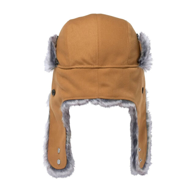 季節感のあるルックスと優れた保温・防寒性で、秋冬シーズンの定番としてストリートのみならずウインタースポーツシーンでもトレンドとなっているトラッパーハット。 ふわふわのシンセティックファーを贅沢に使った、見た目にも暖かな、トラッパーハット最大の特徴とも言えるイヤーフラップはボタンで止めることが可能。 カジュアルにファッションアイテムとして被る時はトップで留めて、耳や顔周りをしっかりと寒さから守りたい時は顎下で留めたりと、用途に合わせてスタイルを変えて被れるのも魅力的。 ユニセックスに使える人気秋冬モデルなので、パートナーとペアコーデで揃えたり、クリスマスやバレンタインのプレゼントにもオススメです。 当店はNEW ERA(ニューエラ)の正規ディーラー(取扱店)です。 ニューエラ・ジャパンの国内正規品のみを販売しておりますのでご安心してお買い求め下さい。