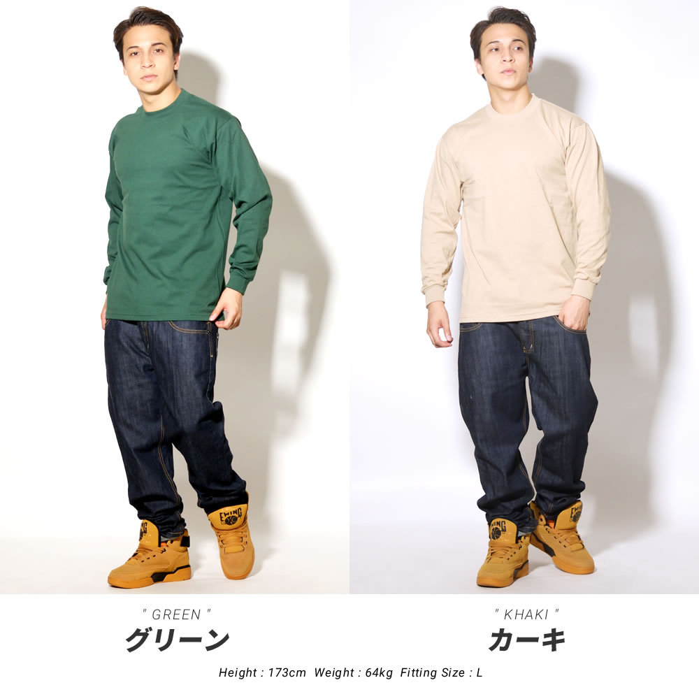 多くのアーティストやアスリート達からも絶大な支持を得ているアメリカを代表する無地専門ブランド「PRO CLUB」を代表する定番人気ロンT。 ザラ感のあるドライなアメリカ産コットン生地(MADE IN USA FABRIC)を使った、ハリ・コシの強いガシッとした生地感が特徴的な6.5ozヘビーウェイトコットン生地を使った質実剛健なタフな着心地。 ゆったりとしたオーバーサイズなボックスシルエットで、旬なビッグシルエットを気軽に取り入れていただけます。 シンプルな無地なのでインナー使いには勿論、おうち時間でのリラックスウェアからトレンドのスポーツミックスやストリートなど、デイリーからタウンユースまで様々なコーデに取り入れていただけます。 ご自身用は勿論、ご家族やカップルでのペアルックやお揃いコーデにもオススメな、男女問わず愛用できる普段使いに最適な無地Tシャツです。 ブランド:PRO CLUB(プロクラブ) モデル名:Heavyweight Cotton Long Sleeve Crew Neck T-Shirt 型番:114 素材:コットン(綿)100% (グレー、チャコールのみポリエステル混紡) サイズ:2XL(3L) , 3XL(4L) , 4XL(5L) 着用モデル:(MEN)173cm 70kg Lサイズ (LADIES)165cm Sサイズ