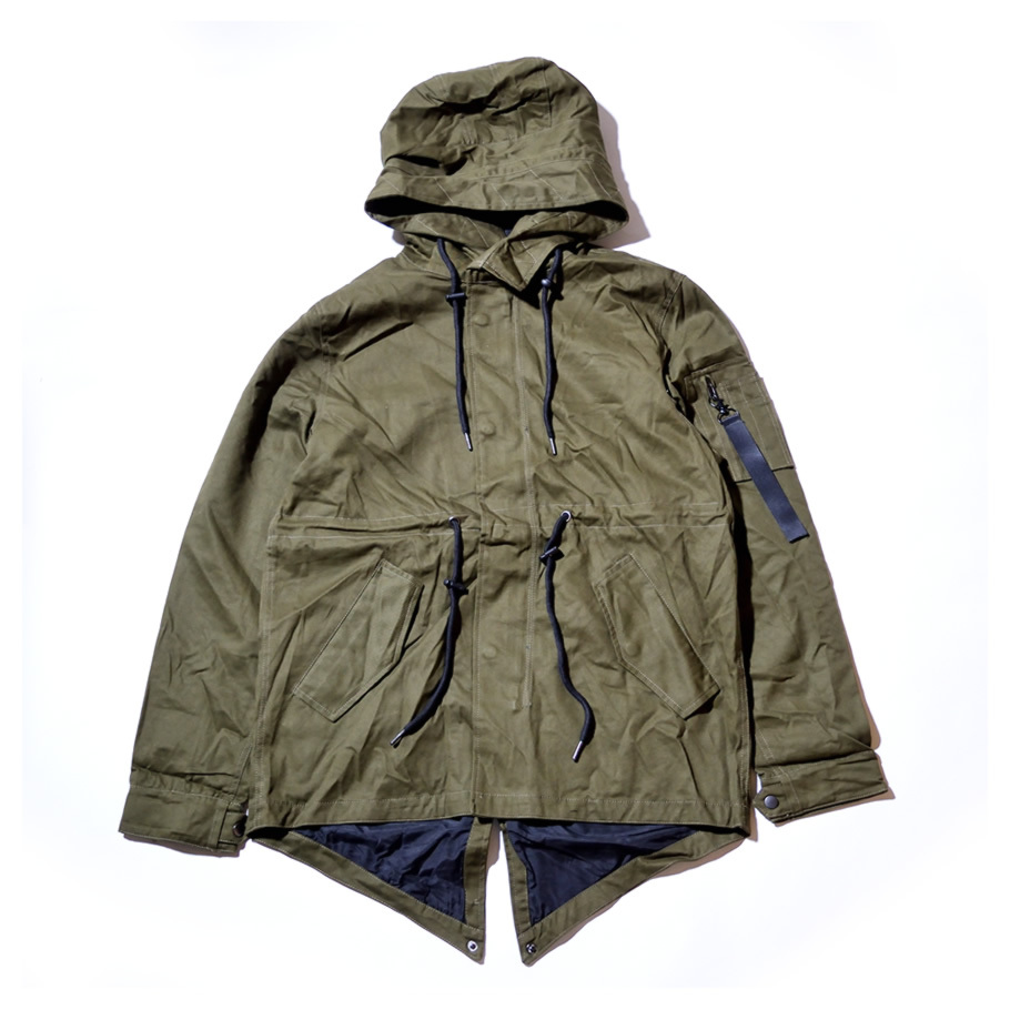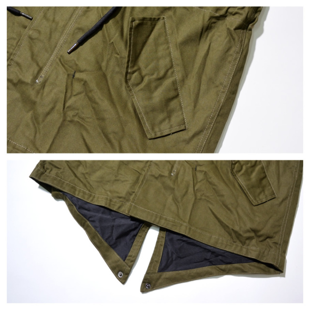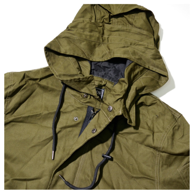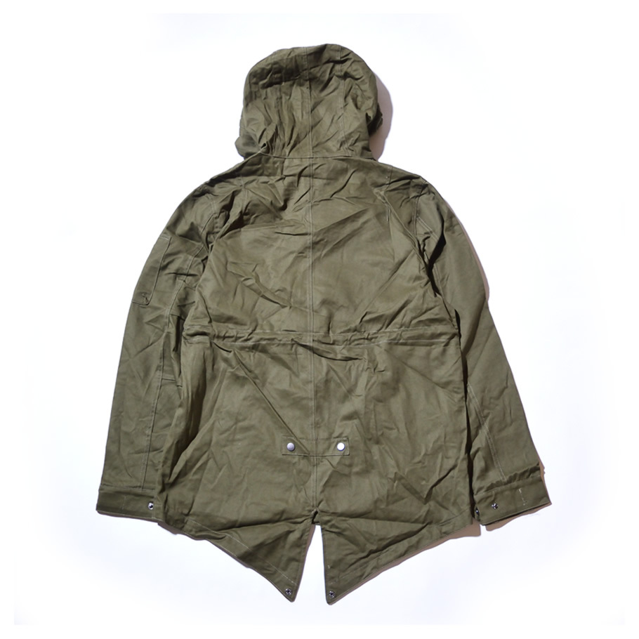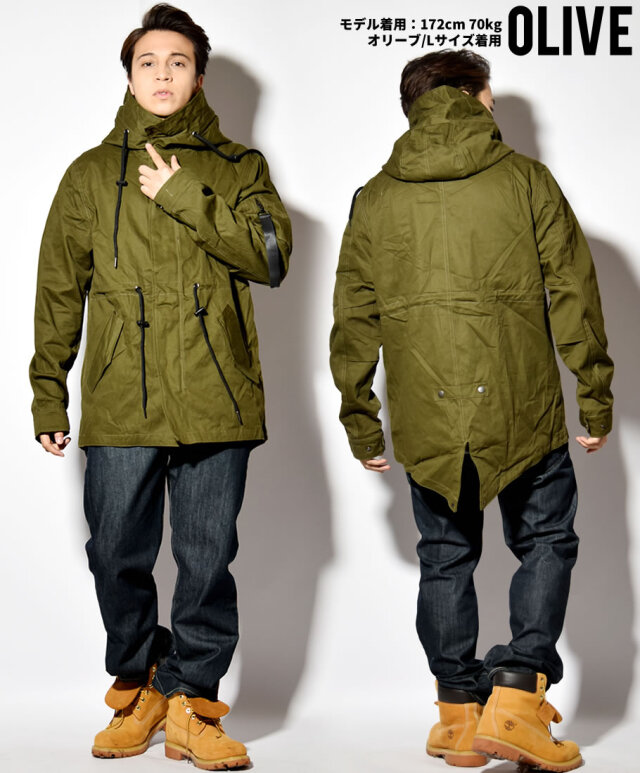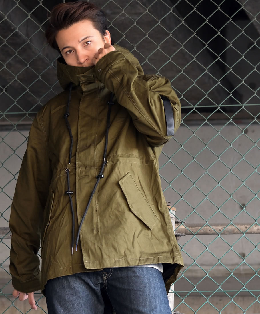 ハリのある美しいコットンクロスを使ったクラシックなミリタリースタイルを踏襲した秋冬の定番アウターのひとつであるM-51モッズパーカー(モッズコート)をカジュアルにアレンジしたライトアウター。 男らしい雰囲気を備えながらもどこか女性的な雰囲気もある土臭ささと上品さを兼ね備えたルックスと、オーバーサイズに着てもカッコイイゆったりとしたミドル丈のシルエットで、カジュアルなストリートファッションから、フォーマルな装いに合わせるコートとしても人気の高いアイテム。 特徴的なフィッシュテールは勿論、比翼仕立ての前開きやフィッティングを高めるウエストコード、多彩なマルチポケットなど、機能美溢れるミリタリーディテールも秀逸。 裏地はナイロン地で袖を通しやすく、軽めの生地感なので、春先や秋口には羽織りとして、冬にはライナージャケットを中に合わせてと、ロングシーズン活躍してくれる万能アウターです。 素材:[表地]コットン(綿)100% [裏地]ポリエステル100% カラー:オリーブ(緑) サイズ:S M L XL(LL) 2XL(3L) 3XL(4L) 着用モデル:173cm 70kg L (MEN)