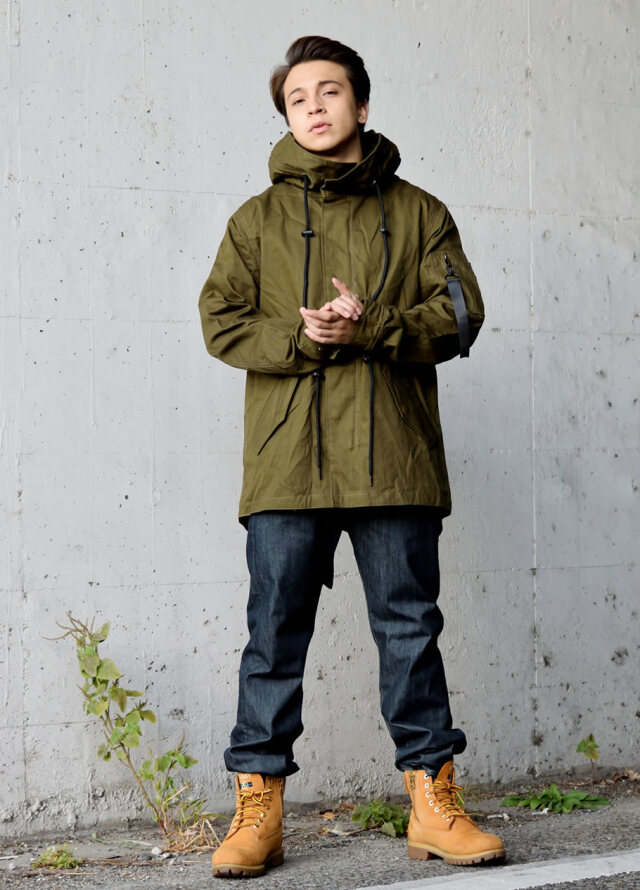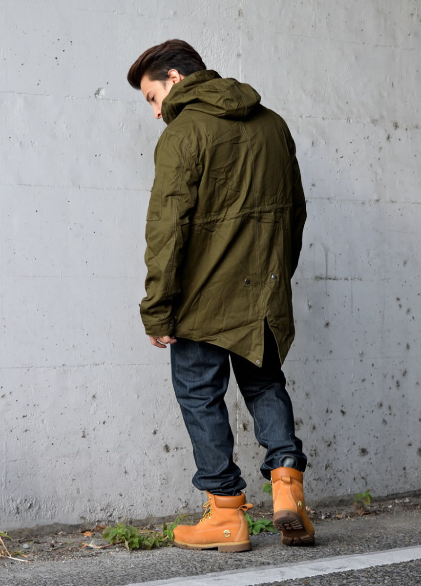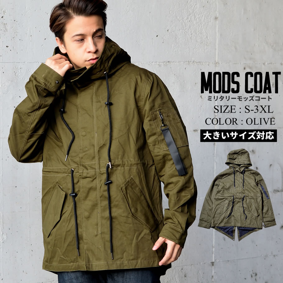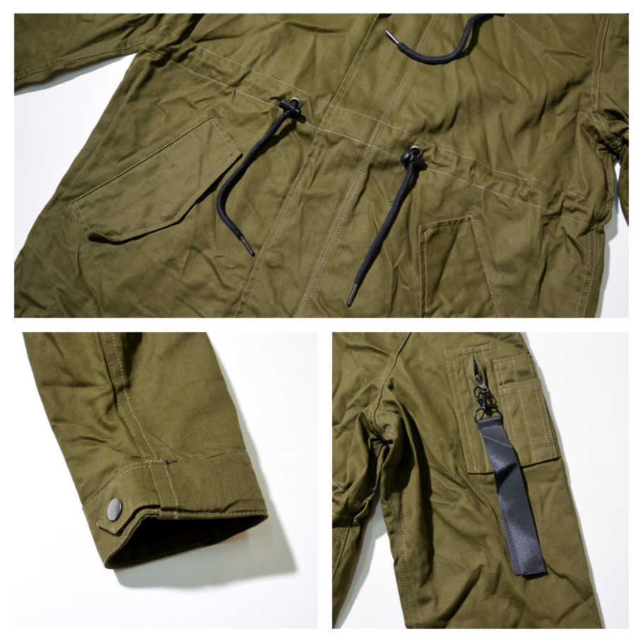 ハリのある美しいコットンクロスを使ったクラシックなミリタリースタイルを踏襲した秋冬の定番アウターのひとつであるM-51モッズパーカー(モッズコート)をカジュアルにアレンジしたライトアウター。 男らしい雰囲気を備えながらもどこか女性的な雰囲気もある土臭ささと上品さを兼ね備えたルックスと、オーバーサイズに着てもカッコイイゆったりとしたミドル丈のシルエットで、カジュアルなストリートファッションから、フォーマルな装いに合わせるコートとしても人気の高いアイテム。 特徴的なフィッシュテールは勿論、比翼仕立ての前開きやフィッティングを高めるウエストコード、多彩なマルチポケットなど、機能美溢れるミリタリーディテールも秀逸。 裏地はナイロン地で袖を通しやすく、軽めの生地感なので、春先や秋口には羽織りとして、冬にはライナージャケットを中に合わせてと、ロングシーズン活躍してくれる万能アウターです。 素材:[表地]コットン(綿)100% [裏地]ポリエステル100% カラー:オリーブ(緑) サイズ:S M L XL(LL) 2XL(3L) 3XL(4L) 着用モデル:173cm 70kg L (MEN)