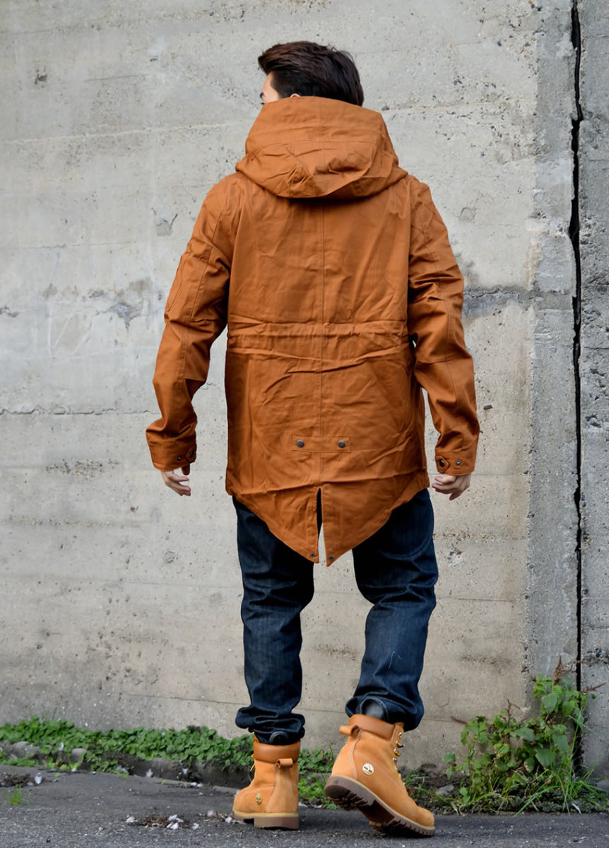 ハリのある美しいコットンクロスを使ったクラシックなミリタリースタイルを踏襲した秋冬の定番アウターのひとつであるM-51モッズパーカー(モッズコート)をカジュアルにアレンジしたライトアウター。 男らしい雰囲気を備えながらもどこか女性的な雰囲気もある土臭ささと上品さを兼ね備えたルックスと、オーバーサイズに着てもカッコイイゆったりとしたミドル丈のシルエットで、カジュアルなストリートファッションから、フォーマルな装いに合わせるコートとしても人気の高いアイテム。 特徴的なフィッシュテールは勿論、比翼仕立ての前開きやフィッティングを高めるウエストコード、多彩なマルチポケットなど、機能美溢れるミリタリーディテールも秀逸。 裏地はナイロン地で袖を通しやすく、軽めの生地感なので、春先や秋口には羽織りとして、冬にはライナージャケットを中に合わせてと、ロングシーズン活躍してくれる万能アウターです。 素材:[表地]コットン(綿)100% [裏地]ポリエステル100% カラー:ブラウン(茶) サイズ:S M L XL(LL) 2XL(3L) 3XL(4L) 着用モデル:173cm 70kg L (MEN)