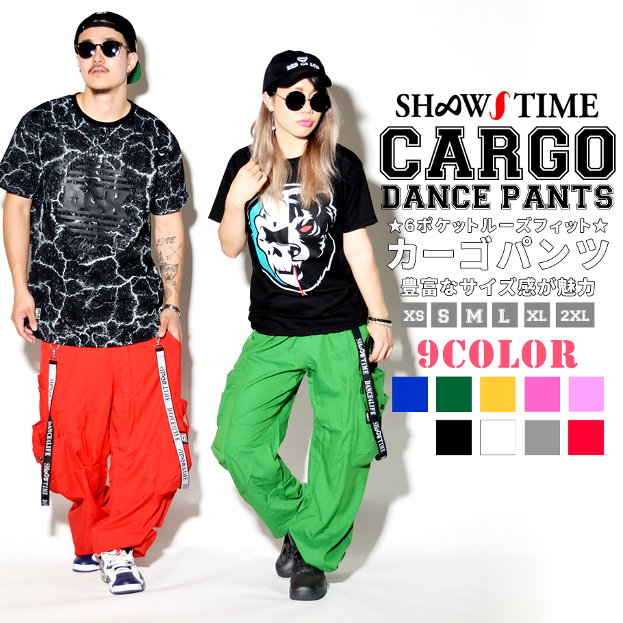 ストリートルックなデザインと「動きやすさ」を追求したアイテム展開で人気のストリートダンスウェアブランドSHOOWTIME(ショータイム)のダンスパンツ。 発色の良いカラーリングが魅力の柔らかなストレッチコットンジャージ生地を使用した、動きやすさと快適な着心地を実現したスウェットカーゴパンツ。 ゆったりとしたシルエットの6ポケットカーゴパンツスタイルにロゴをジャガードデザインしたウエストバンドやサスペンダーがアクセントになった、タウンユースでも映えるストリートルックなオシャレな見た目も魅力的! サイズ:ウエスト│股下│裾幅(cm) XL:84~90│71│30 2XL:88~94│71.7│31 男性モデル:178cm 70kg L~XLサイズ着用 女性モデル:164cm XS~Sサイズ着用 備考:トラックパンツ ジャージパンツ カーゴパンツ ワイドパンツ メンズ レディース ユニセックス 男子 女子 男女兼用 メンズライク ストリート系 ダンス フィットネス スポーツ ヨガ ズンバ ランニング HIPHOP ヒップホップ 衣装 おしゃれ かっこいい かわいい カップル ペアルック お揃い 春 夏 秋 冬 オールシーズン 10代 20代 30代 40代