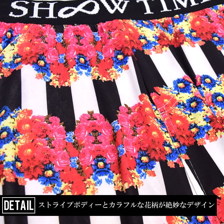 ストリートルックなデザインと「動きやすさ」を追求したアイテム展開で人気のストリートダンスウェアブランドSHOOWTIME(ショータイム)のダンスパンツ! リラックス感抜群なゆったりとしたバルーンシルエットが特徴的なサルエルショートパンツ!軽やかでストレッチ性に優れたスウェット生地は動きやすく快適な着心地。 ロンドンストライプに花柄を合わせたフレッシュなパターンによる、タウンユースでも映えるストリートルックなオシャレな見た目も魅力的! サイズ:ウエスト│股下│わたり│裾幅(cm) L:80~│34│34│16 XL:84~│35│35│17 女性モデル:158cm XSサイズ着用 備考:ハーフパンツ ショートパンツ ショーパン ショーツ スウェットパンツ バルーンパンツ シェフパンツ サルエルパンツ ジャージ ワイドパンツ ユニセックス 男子 女子 男女兼用 メンズライク ストリート系 ダンス フィットネス スポーツ ヨガ ズンバ ランニング HIPHOP ヒップホップ ダンス 衣装 おしゃれ かっこいい かわいい カップル ペアルック お揃い 春 夏 秋 冬 オールシーズン 10代 20代 30代 40代