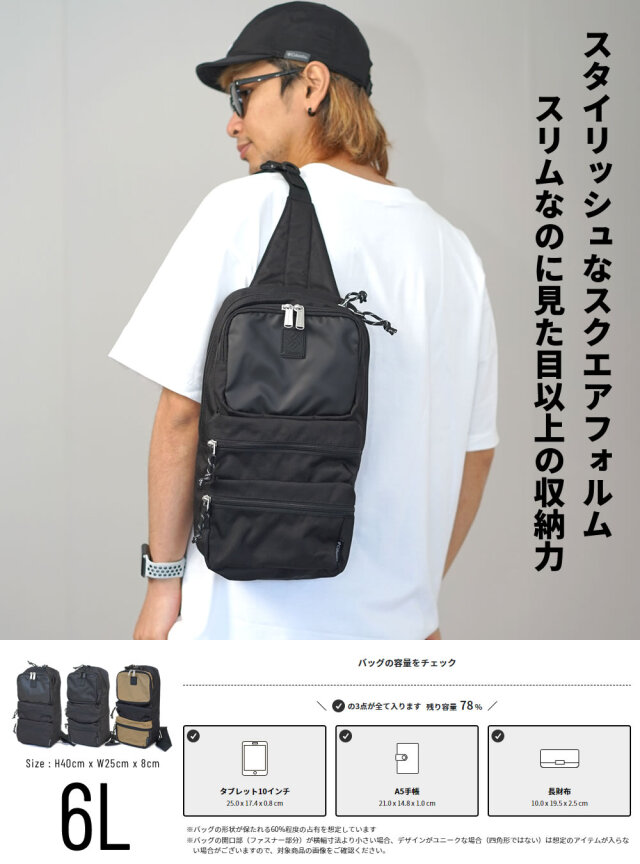 アウトドアやフェスでの使用は勿論、タウンユースや旅行時のサブバッグとしても活躍してくれる、近所からちょっとした遠出にまで気軽に使える万能ボディバッグ。