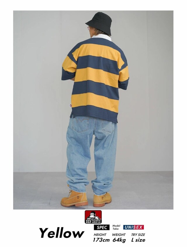 BEN DAVIS ベンデイビス ラグビーシャツ メンズ 半袖 PATCH RUGBY BORDER TEE イエロー bett036