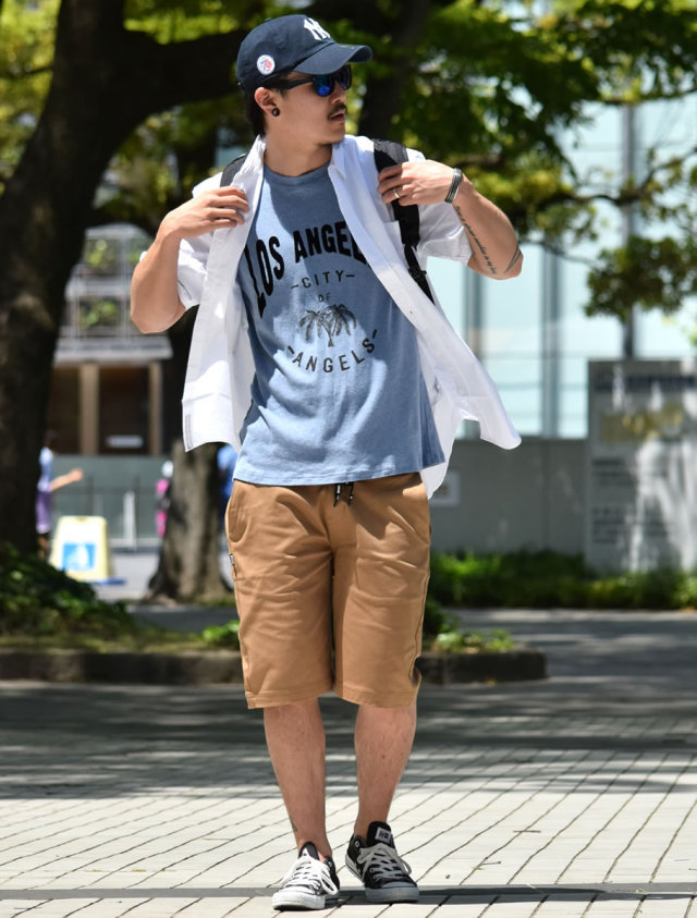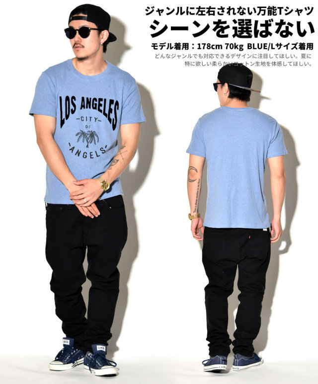 ヴィンテージTシャツの様なこなれ感のある杢カラーのコットンボディに、西海岸リゾートテイストなLOS ANGELESロゴをフロッキー×インクジェットプリントで立体感や微妙な色味まで表現した表情豊かなデザインTシャツ。