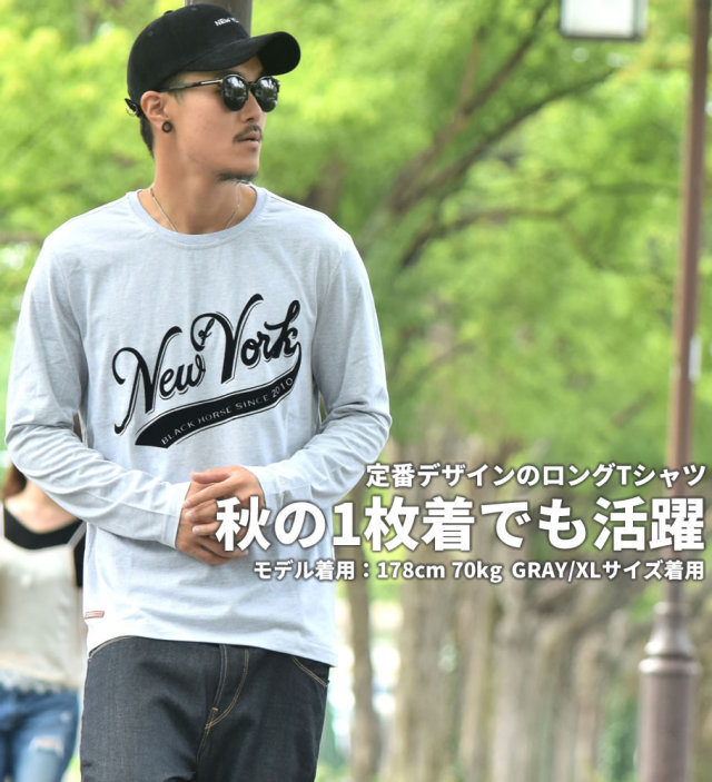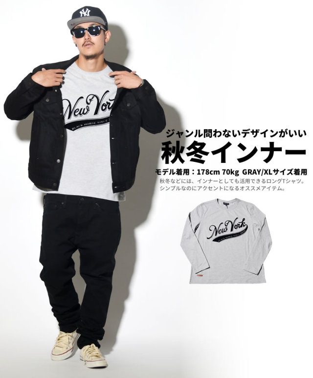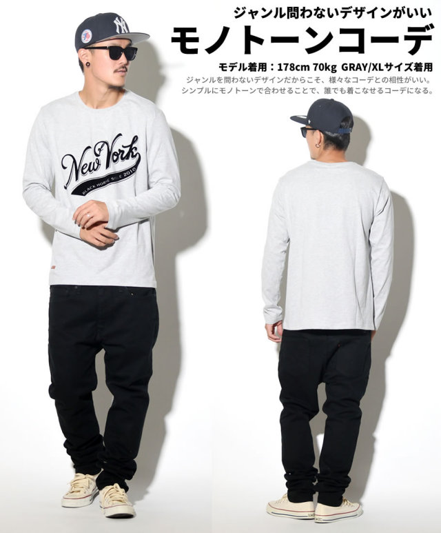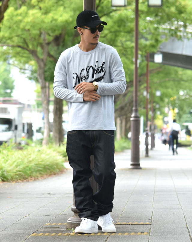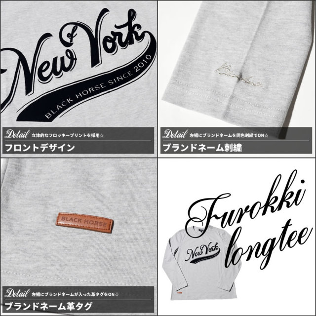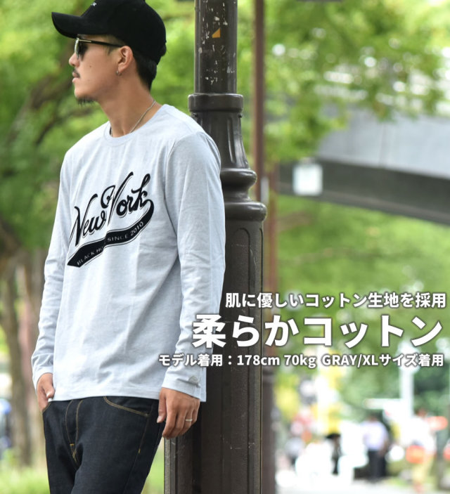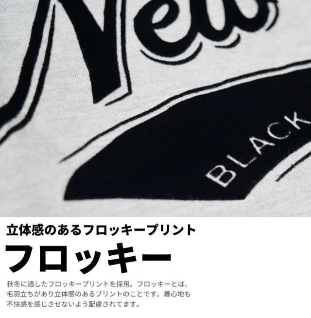 カレッジなNEW YORKロゴを立体感のあるフロッキープリントでデザインした、アメカジ王道のクラシックデザインが魅力的な長袖Tシャツ。