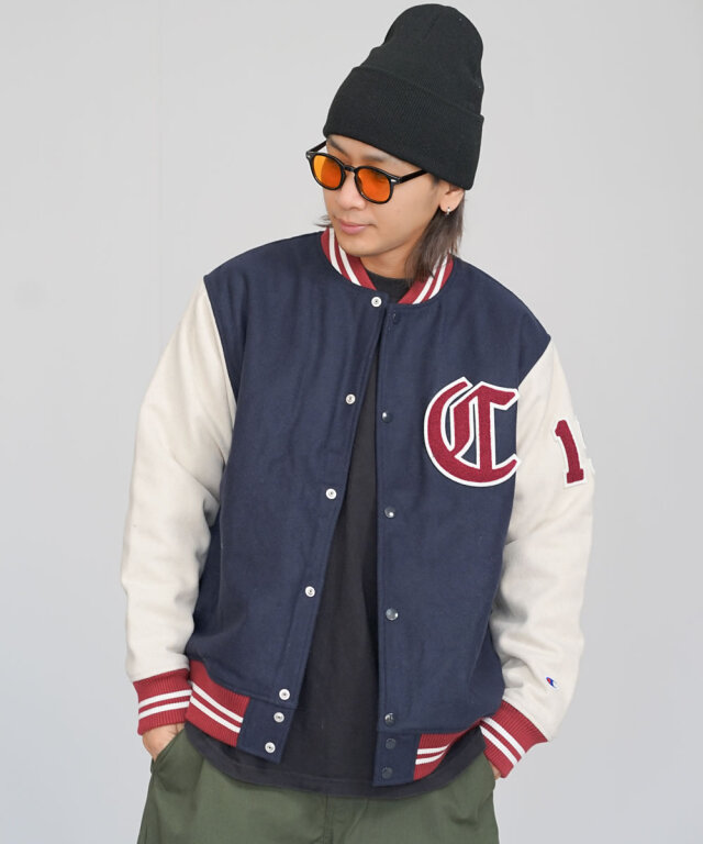 チャンピオン スタジャン メンズ ウール 中綿 アウター Champion アワードジャケット 23FW メンズカジュアル C3-Y606 chjdp1101