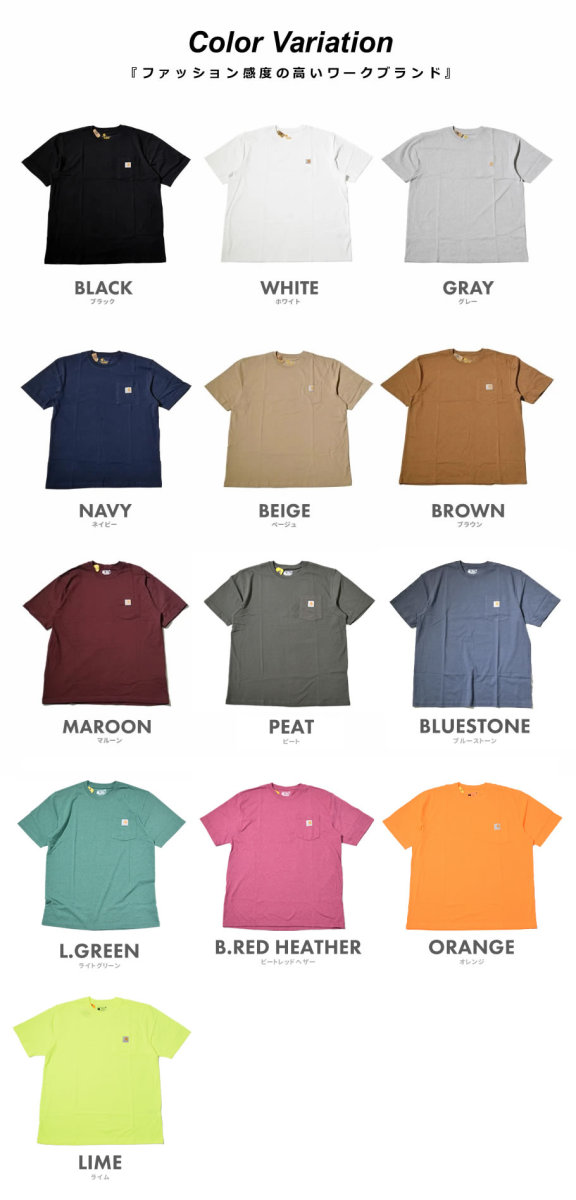 Carhartt カーハート ポケットTシャツ メンズ 半袖 ヘビーウェイト ビッグシルエット 大きいサイズ USAモデル K87 chtt003