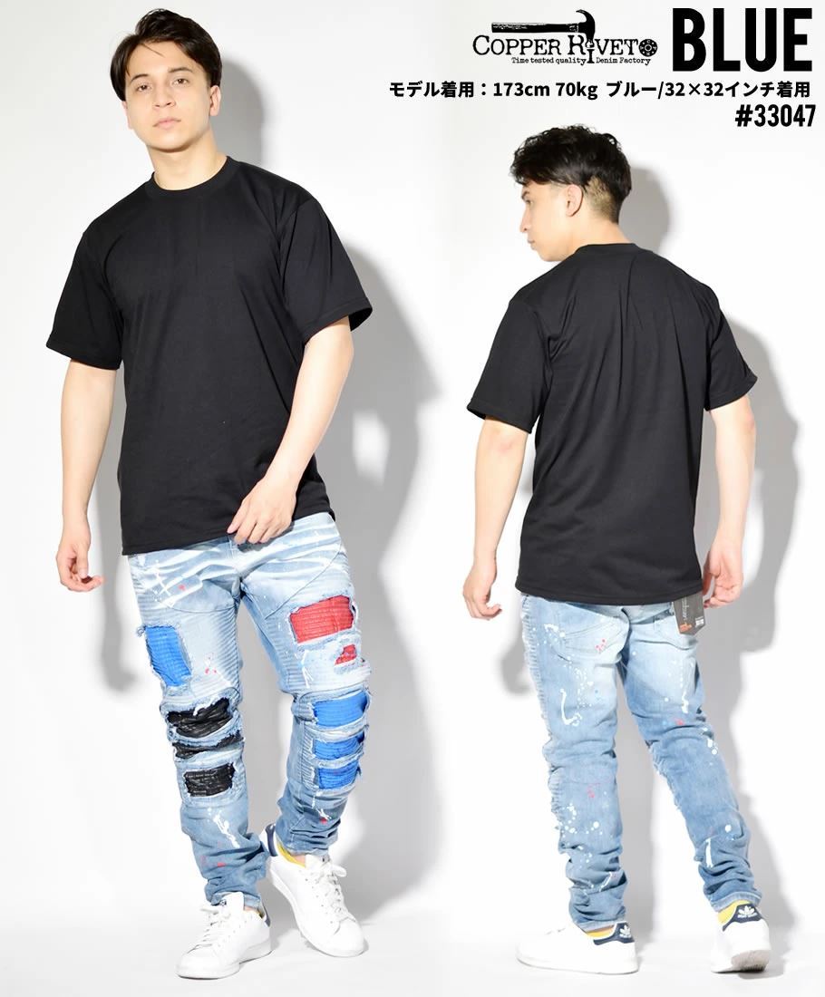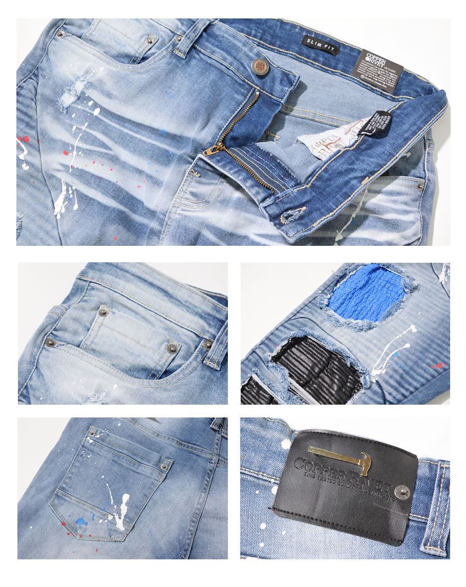 コッパーリベット COPPER RIVET デニム バイカーパンツ メンズ ダメージ クラッシュ加工 ストレッチ スリム USAブランド BIKER RIP & REPAIR 33047 crdt001