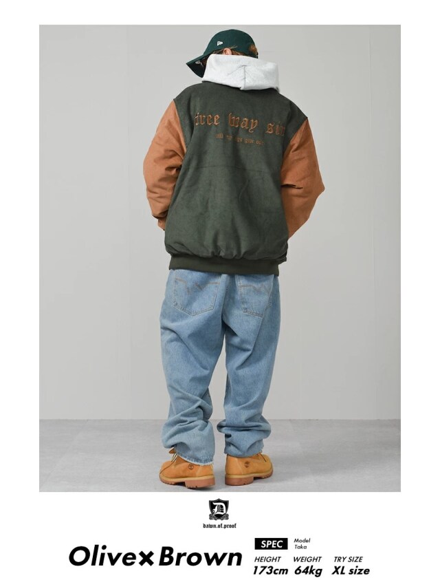 70's~80'sのヴィンテージスタジャンを現代風にオーバーサイズシルエットにアレンジした襟付きスタジャン。