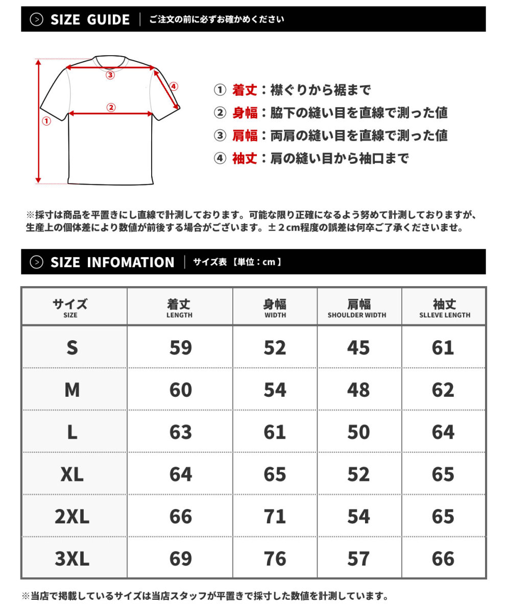 S , M , L , XL(LL) , 2XL(3L) , 3XL(4L)