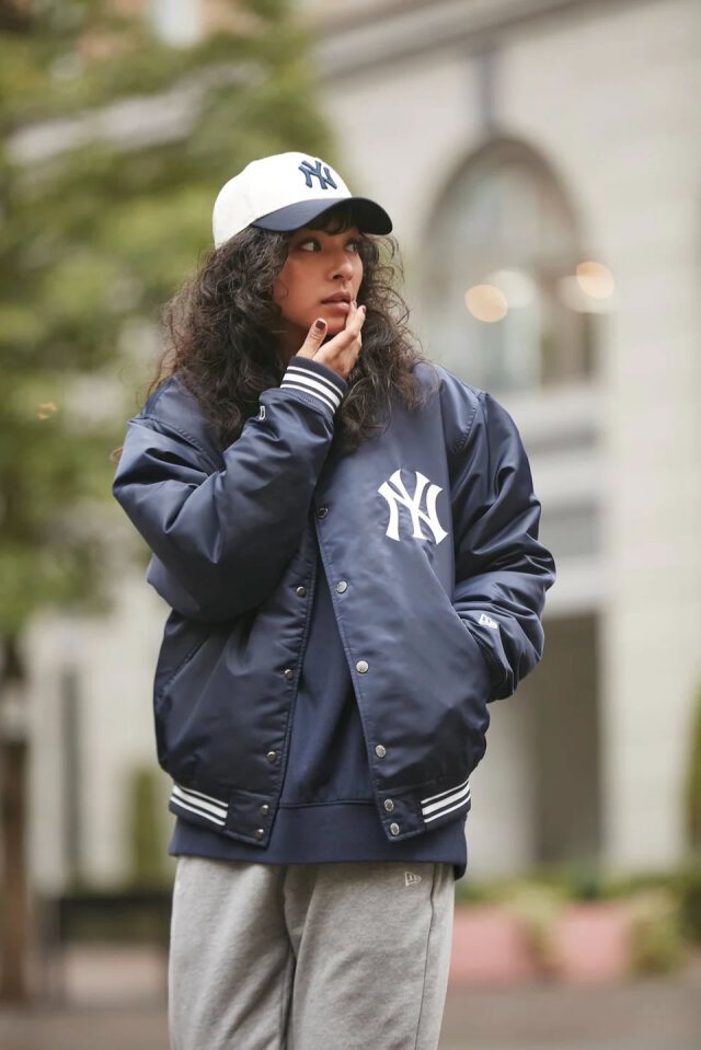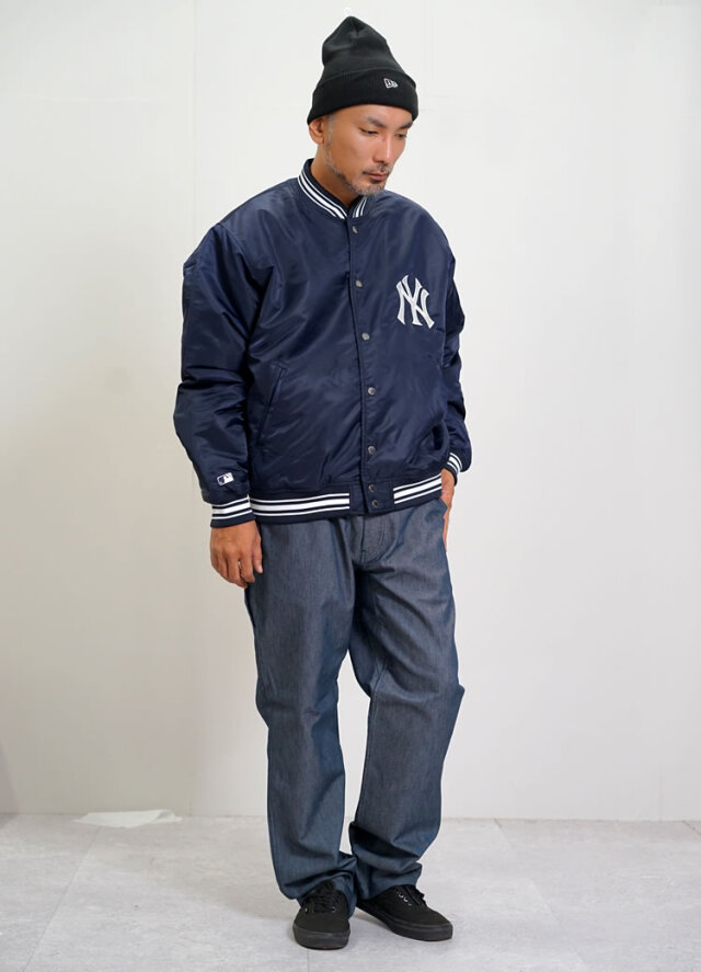 ニューエラ スタジャン スタジアムジャンパー メンズ 中綿入り アウター NEW ERA ナイロン バーシティジャケット MLB ニューヨーク・ヤンキース ネイビー nejdp1001