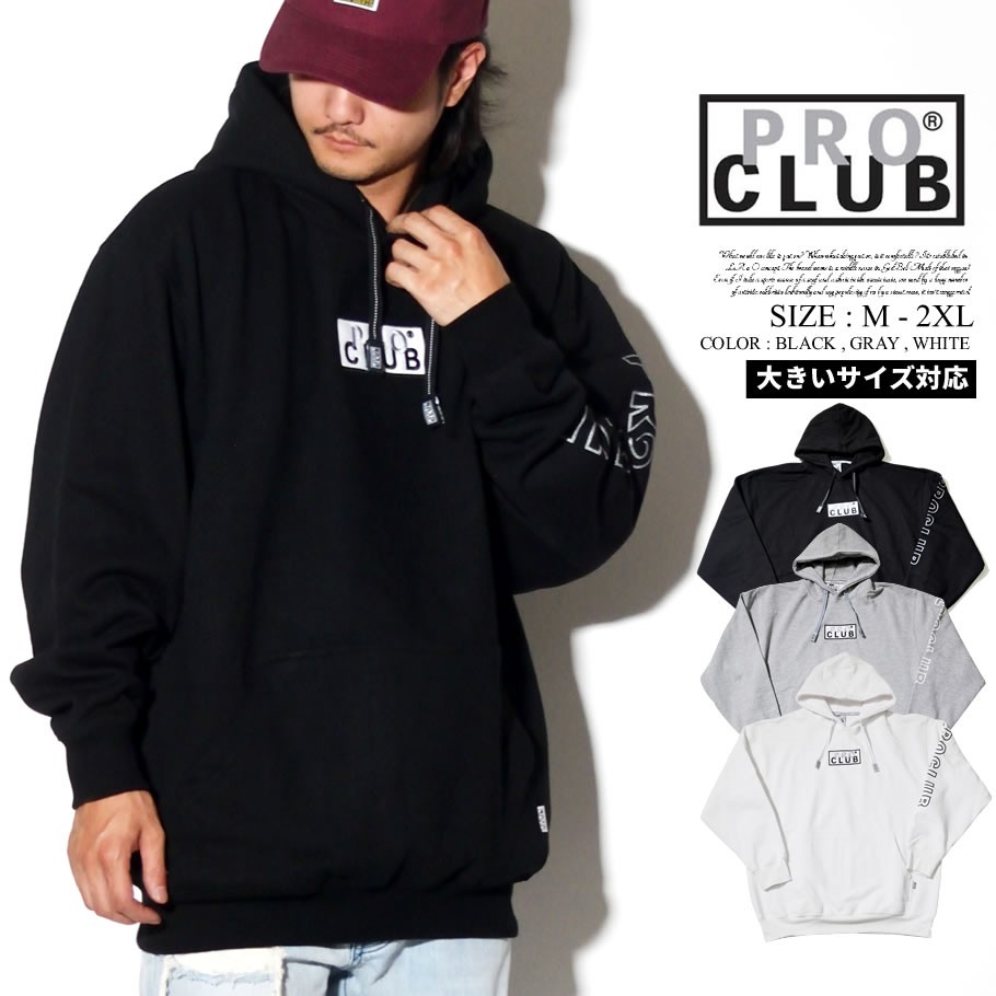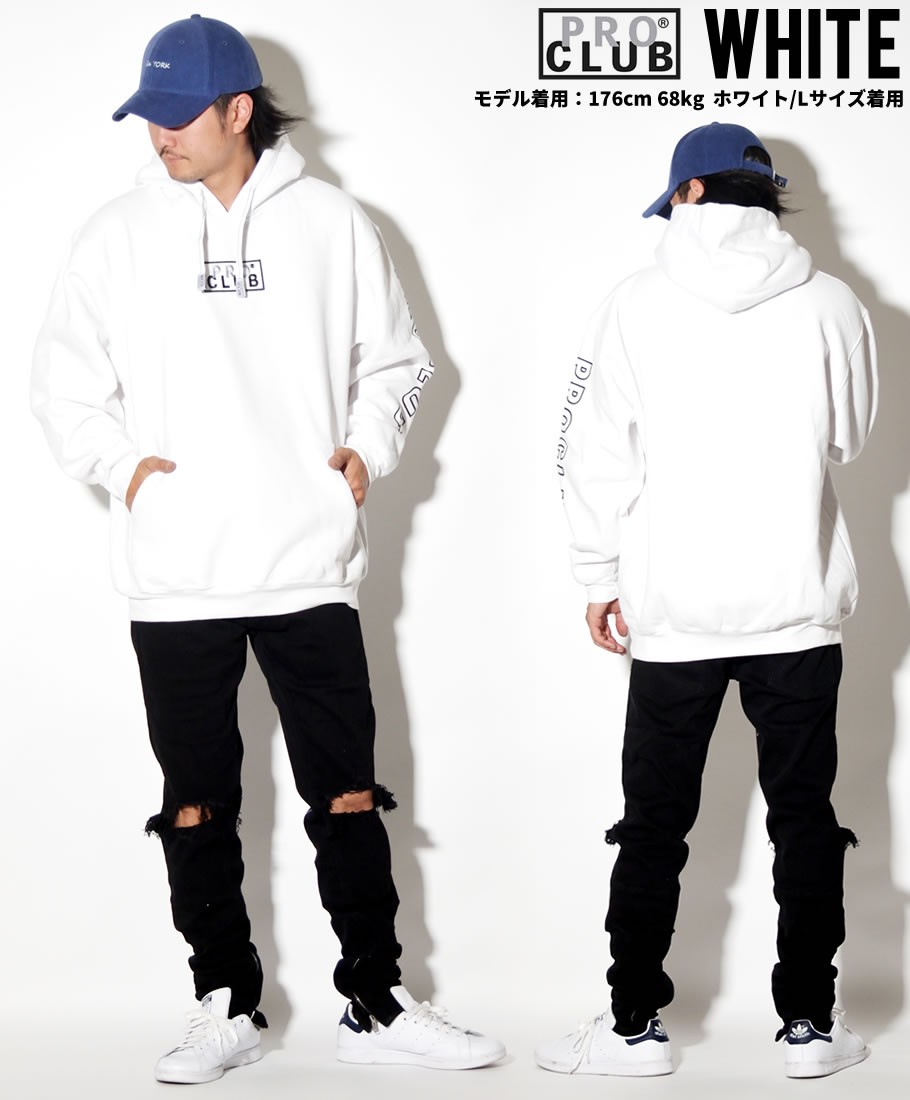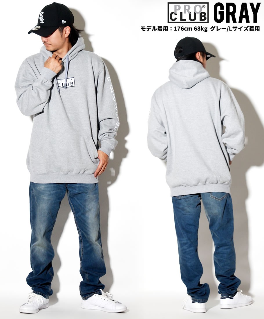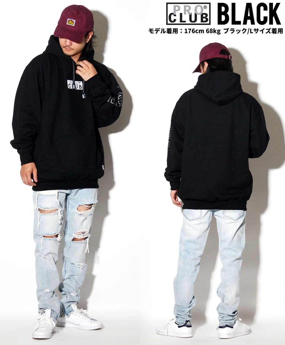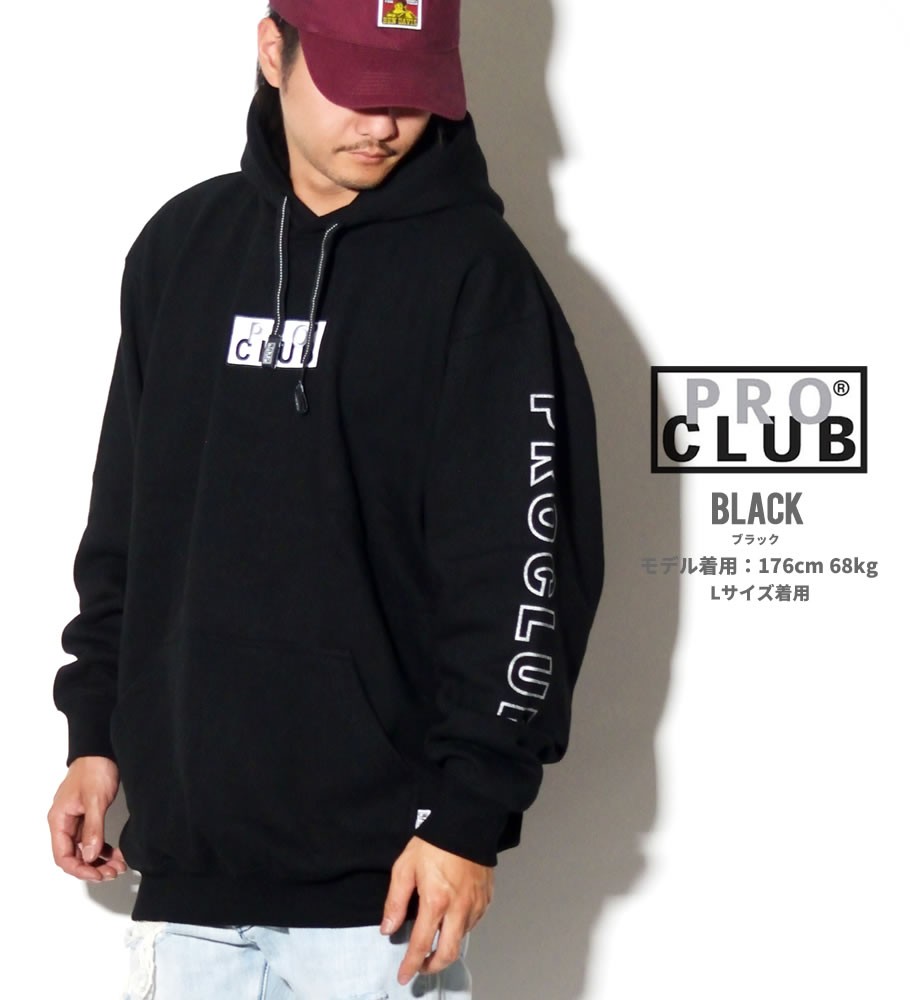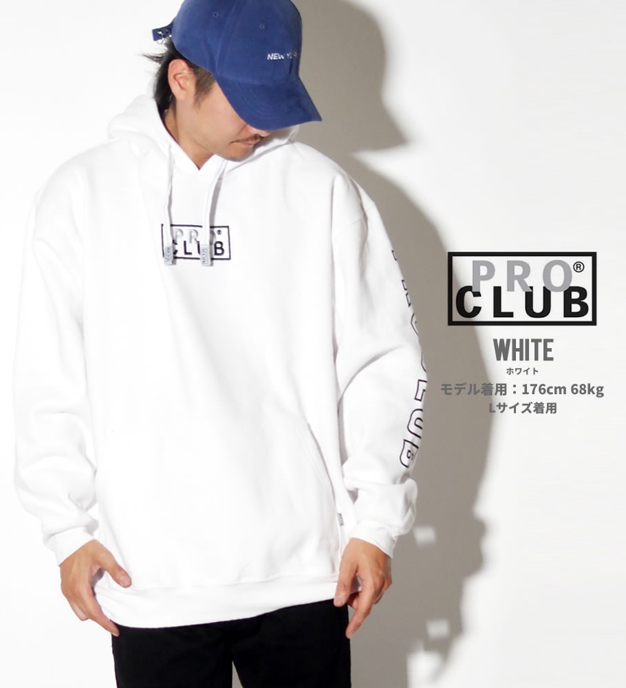 デイリーウェアのプロフェッショナルとして優れたクオリティのベーシックアイテムを展開する、多くのアーティストやアスリート達からも絶大な支持を得ているアメリカを代表する無地ブランド「PRO CLUB」のパーカー。 ボディには暖かくてソフトな肌触りのフリース(裏起毛)素材のヘビーウェイトスウェットを採用。春先や秋口の一枚着としては勿論、冬にはアウターの下に差し込むミドルレイヤーとしても最適。 プロクラブならでは特徴とも言える、ゆったりとリラックス感のあるオーバーサイズなボックスシルエットで、ビッグシルエットとしてルーズな雰囲気で着こなしていただけます。 今作はフロントにボックスロゴ刺繍、右袖に「PRO CLUB」のスリーブプリントを落とし込んだリミテッドコレクションのアイテム。