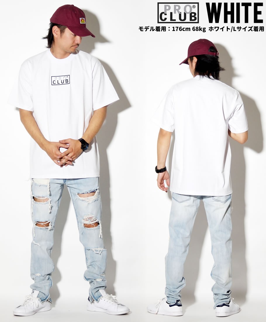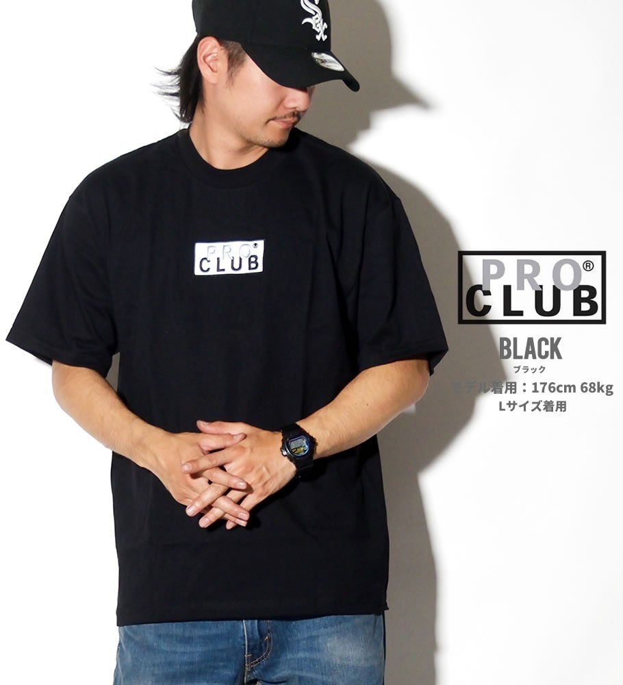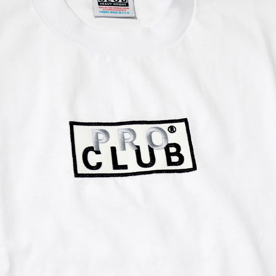 デイリーウェアのプロフェッショナルとして優れたクオリティのベーシックアイテムを展開する、多くのアーティストやアスリート達からも絶大な支持を得ているアメリカを代表する無地ブランド「PRO CLUB」の半袖クルーネックTシャツ。 ボディはプロクラブらしいガッシリとした度詰めのタフな質感が魅力的なしっかりとした6.5オンスのヘビーウェイトコットンジャージ生地を使用。春先、秋口の一枚着としては勿論、冬にはインナーとして、シーズンを通して着回していただけるベーシックとして活躍間違いなしの一着。 プロクラブならでは特徴とも言える、ゆったりとリラックス感のあるオーバーサイズなボックスシルエットで、ビッグシルエットとしてルーズな雰囲気で着こなしていただけます。 今作はフロントにボックスロゴ刺繍を落とし込んだリミテッドコレクションのアイテム。