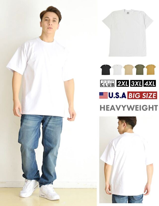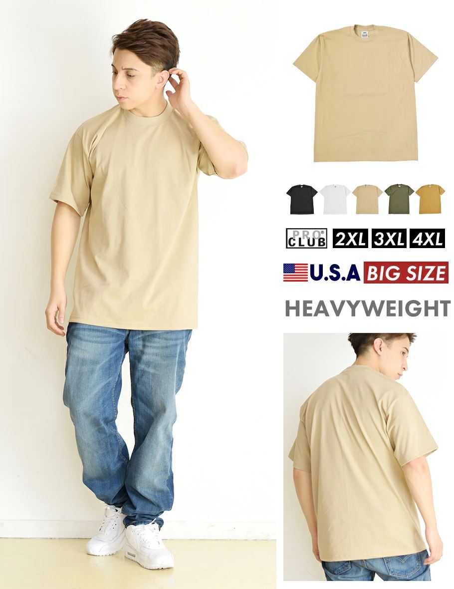(BIGサイズ)プロクラブ Tシャツ メンズ 半袖 ヘビーウェイト 無地 シンプル ブランド 大きいサイズ USAモデル PRO CLUB #101 2XL~4XL pbtt006