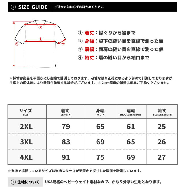 ※衣類は全て平台に平置きし、外寸を測定しています。