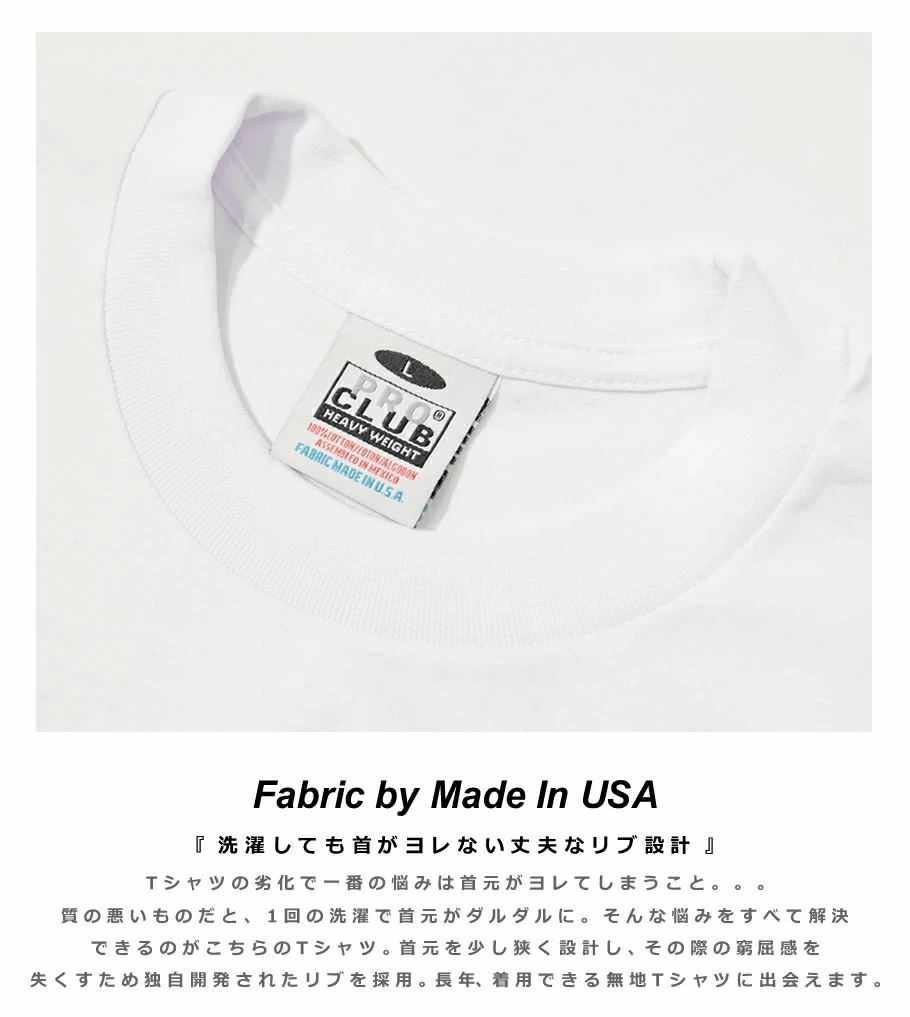 多くのアーティストやアスリート達からも絶大な支持を得ているアメリカを代表する無地専門ブランド「PRO CLUB」を代表する定番人気Tシャツ。