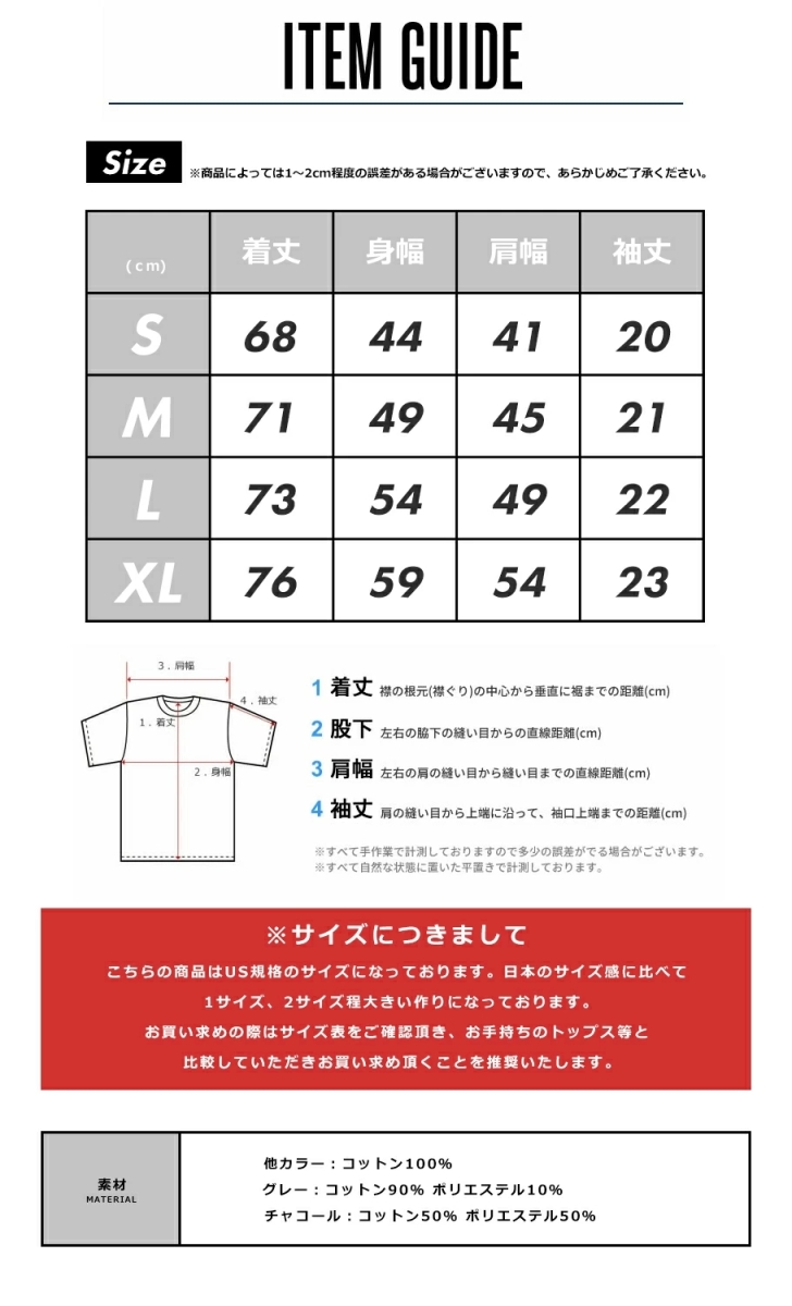 日本モデルと比較して大きめのサイズ感の為、普段のお洋服より1~2サイズ下がオススメです。
