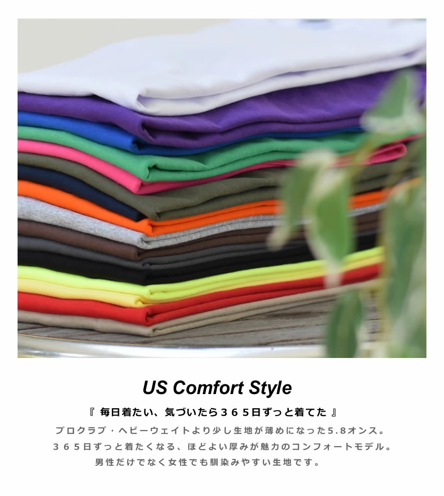 ドライでザラ感のあるアメリカ産コットン素材(MADE IN USA FABRIC)を使ったガシッと感がありながらも柔らかな5.8オンスのミッドウェイト生地でベーシックに使える王道無地Tシャツ!