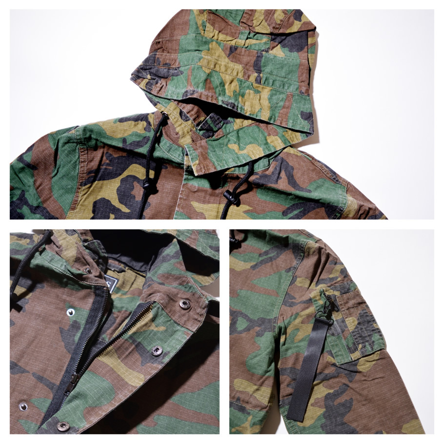 ミリタリー定番の防裂性のあるリップストップ生地を使ったクラシックなミリタリースタイルを踏襲した秋冬の定番アウターのひとつであるM-51モッズパーカー(モッズコート)をカジュアルにアレンジしたライトアウター。