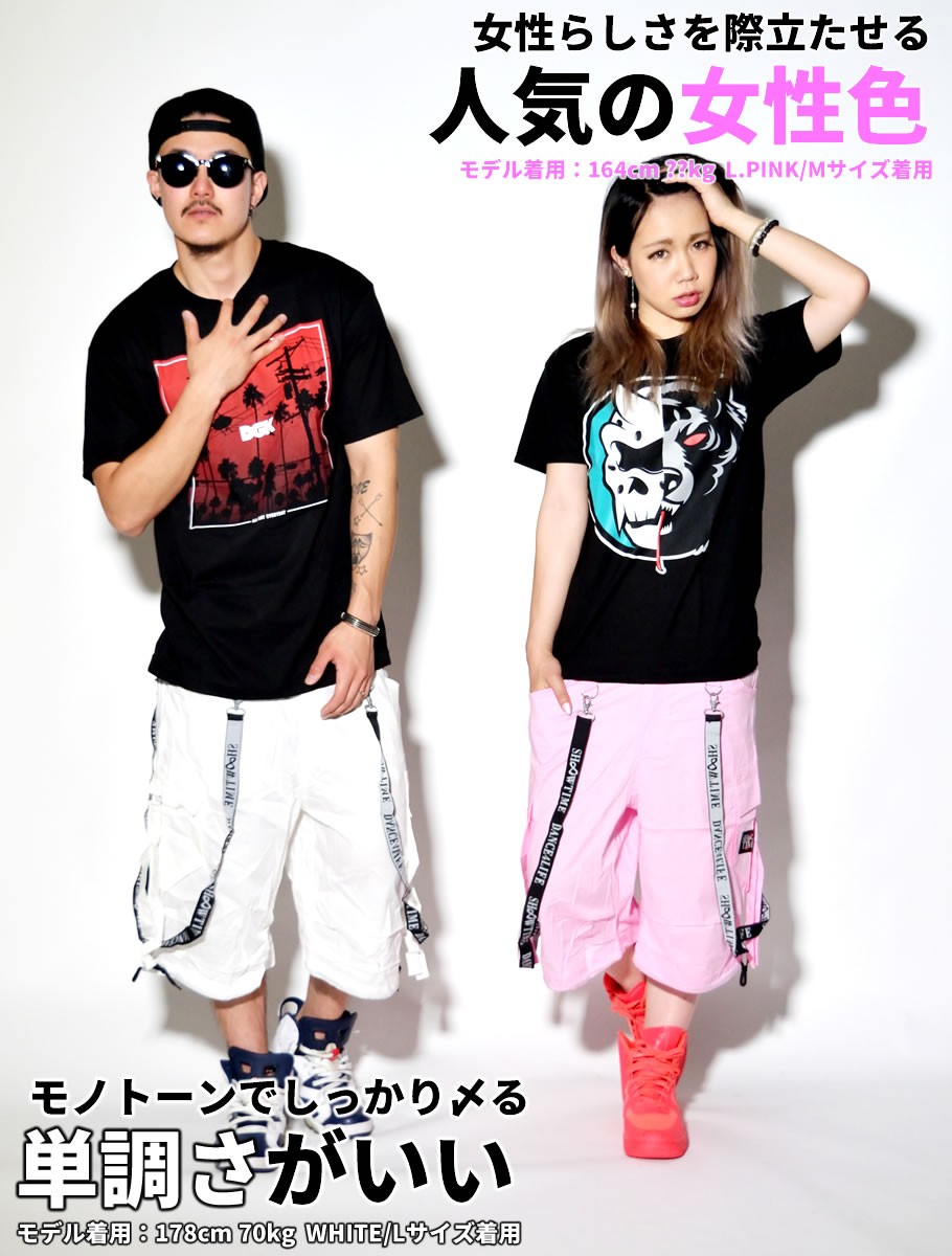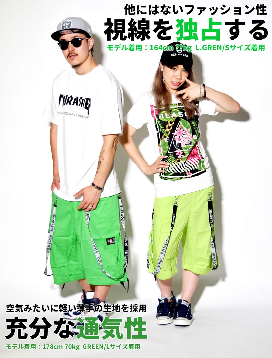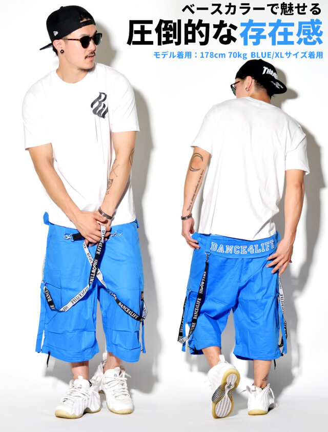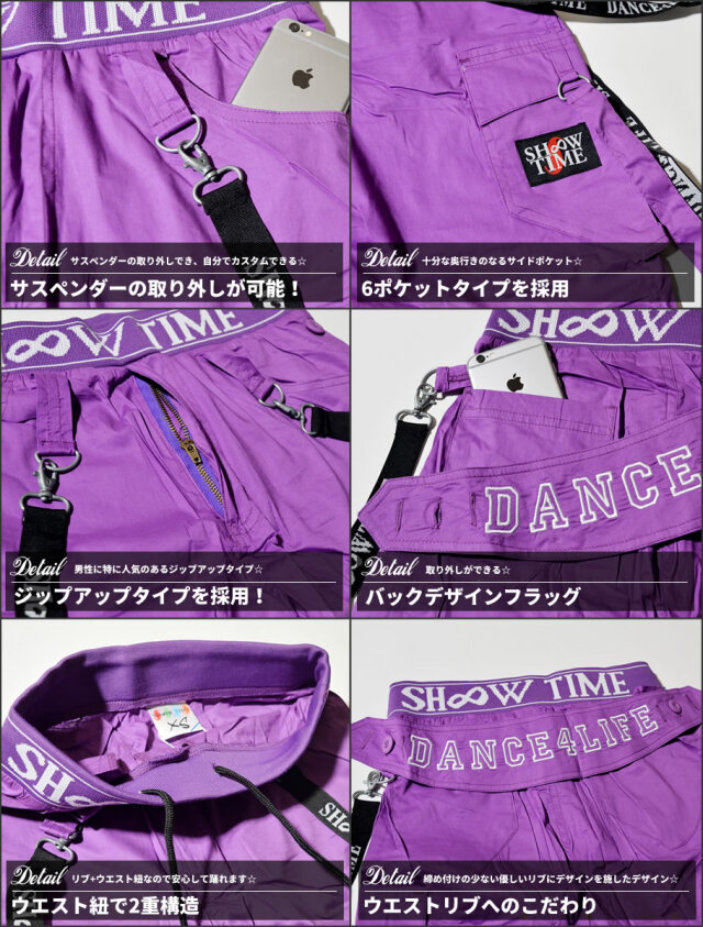 ストリートルックなデザインと「動きやすさ」を追求したアイテム展開で人気のストリートダンスウェアブランドSHOOWTIME(ショータイム)のダンスパンツ! 空気の様に軽くストレッチ性にも優れた、動きやすさと快適な着心地を実現した、ダンスやフィットネスなどの激しいアクティブにも最適なエアーカーゴショーツ。 ゆったりとしたシルエットの6ポケットカーゴパンツスタイルにロゴをジャガードデザインしたウエストバンドやサスペンダーがアクセントになった、タウンユースでも映えるストリートルックなオシャレな見た目も魅力的!