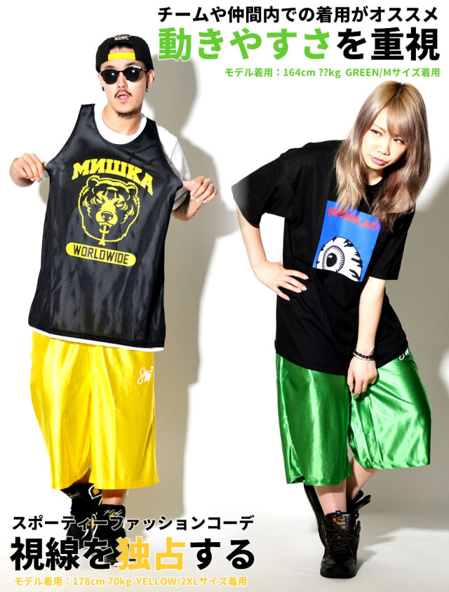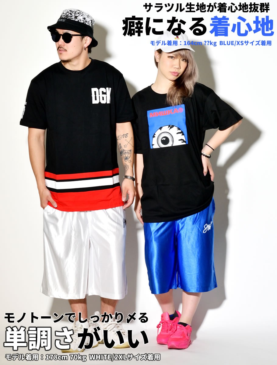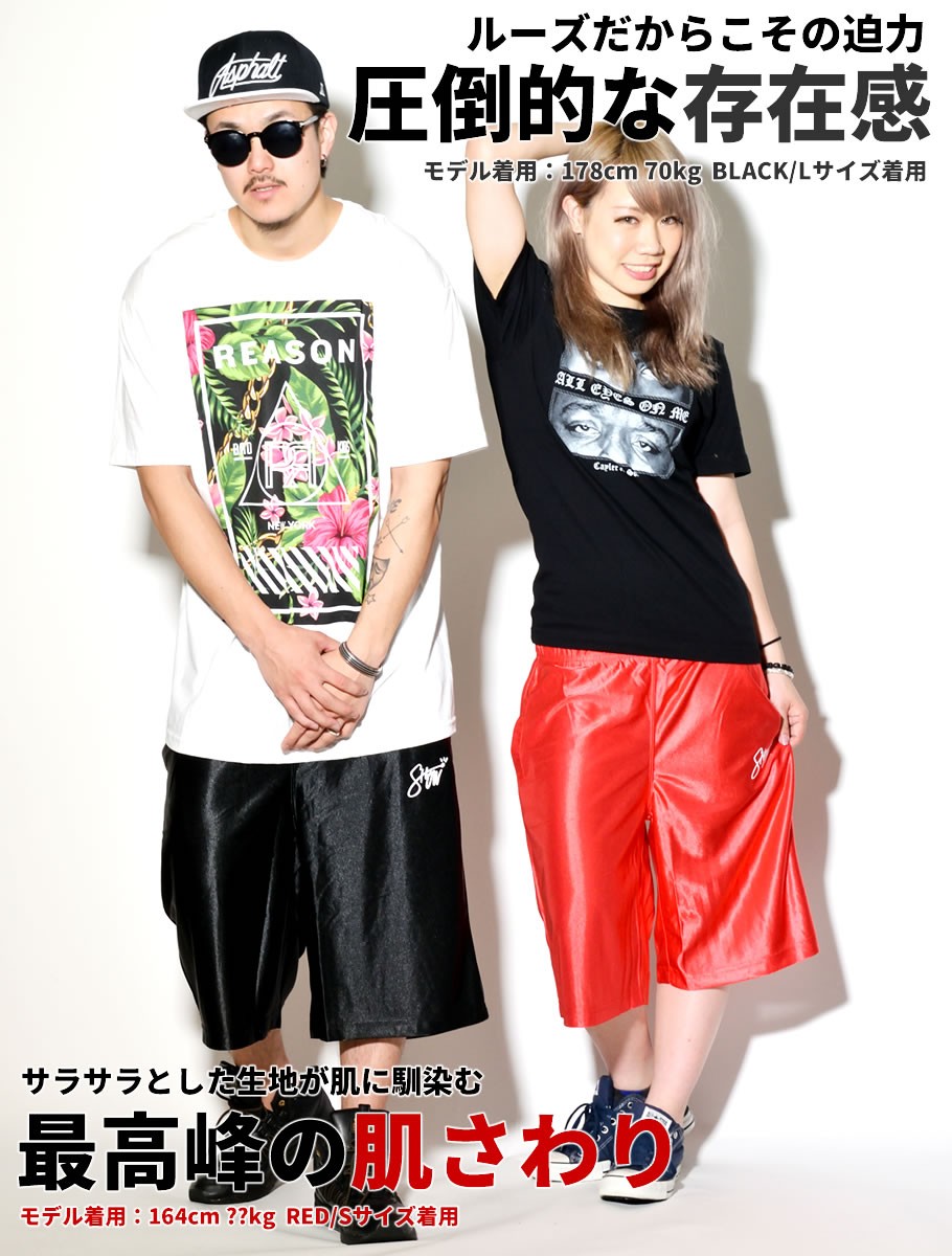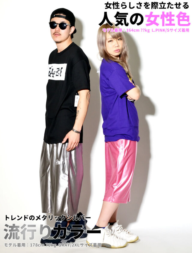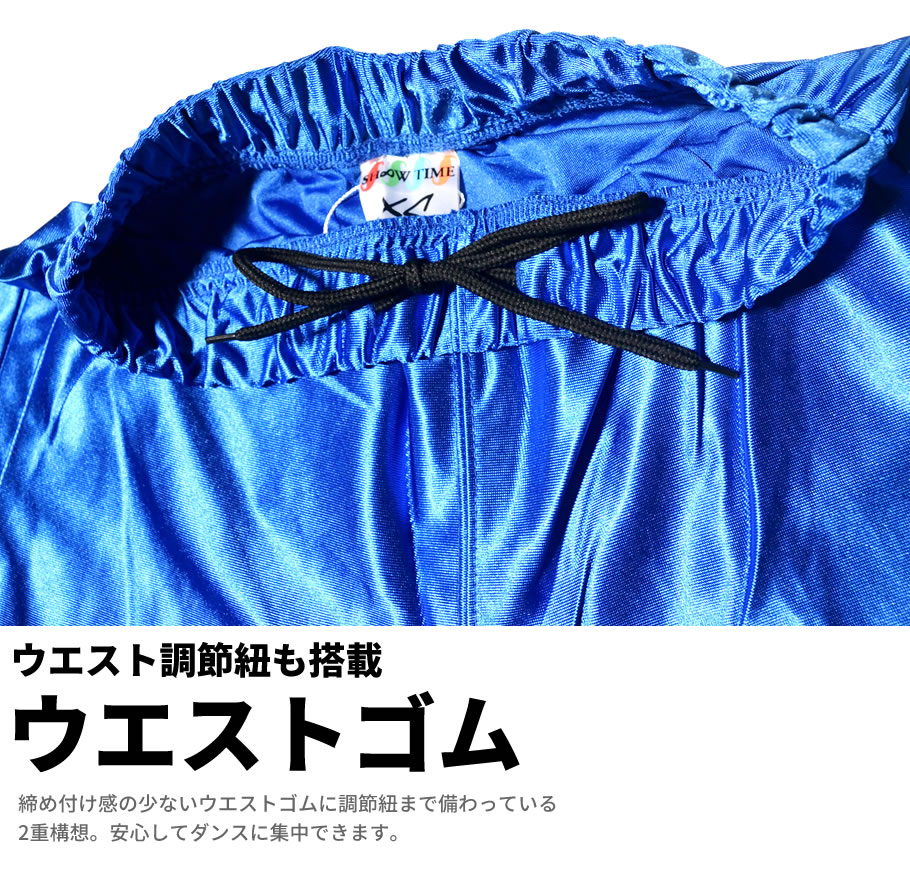 ストリートルックなデザインと「動きやすさ」を追求したアイテム展開で人気のストリートダンスウェアブランドSHOOWTIME(ショータイム)のダンスパンツ! シャイニーな光沢感のあるメタリックカラーのサテンジャージ生地を使った、スポーティなミックスコーデにも欠かせないバスケットショーツ。 ブランドロゴをワンポイントに入れたタウンユースでも映えるストリートルックなオシャレな見た目も魅力的!