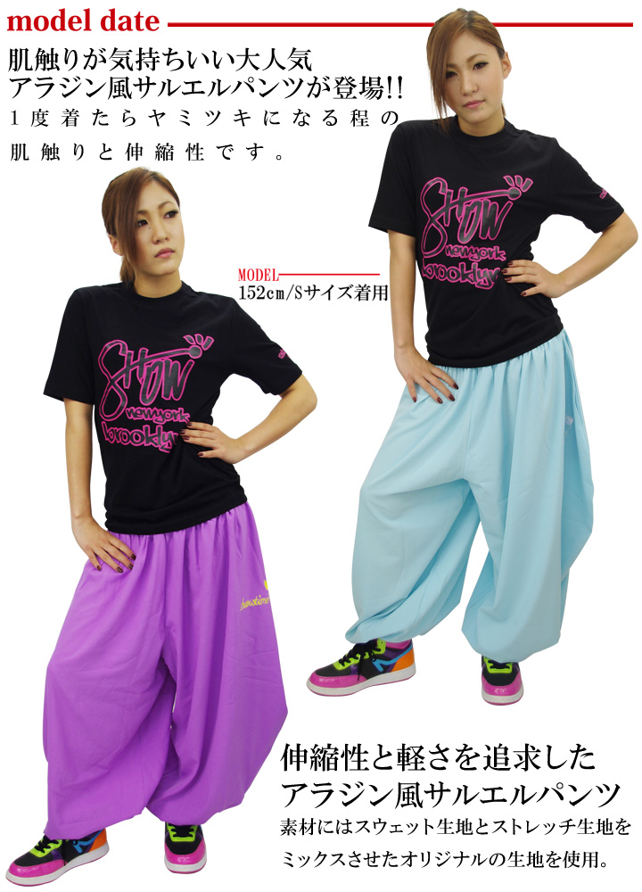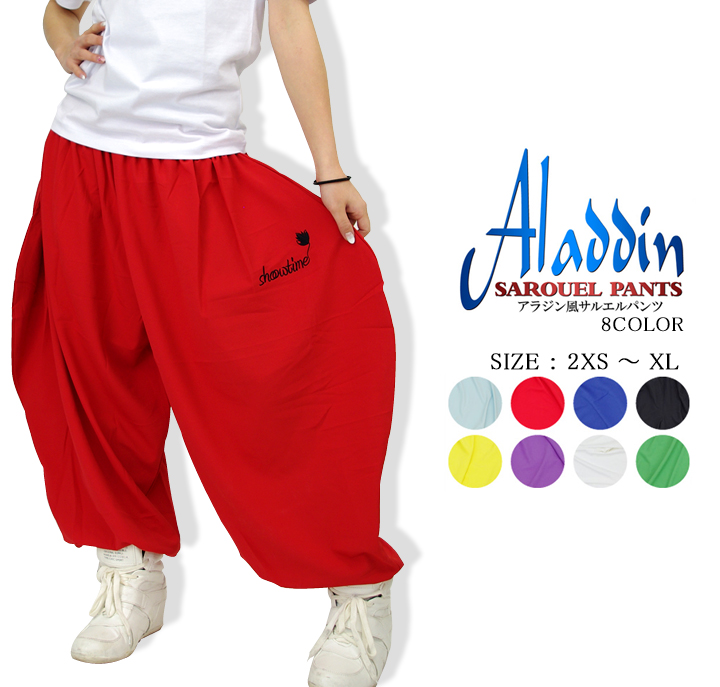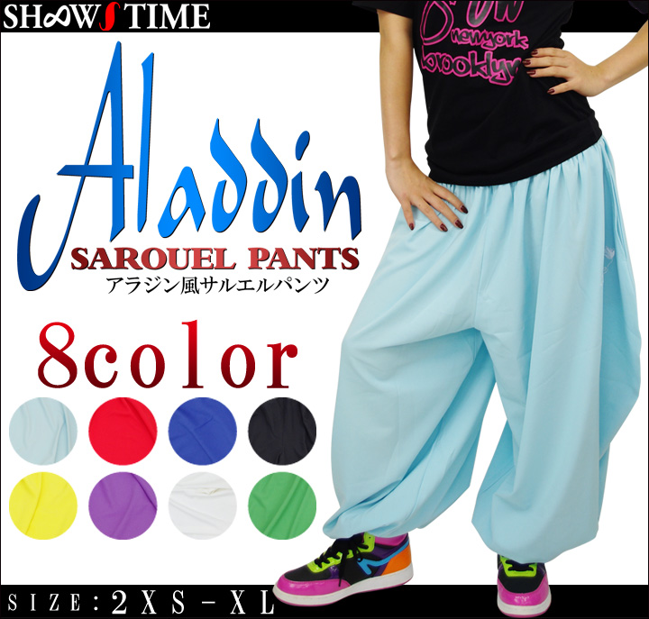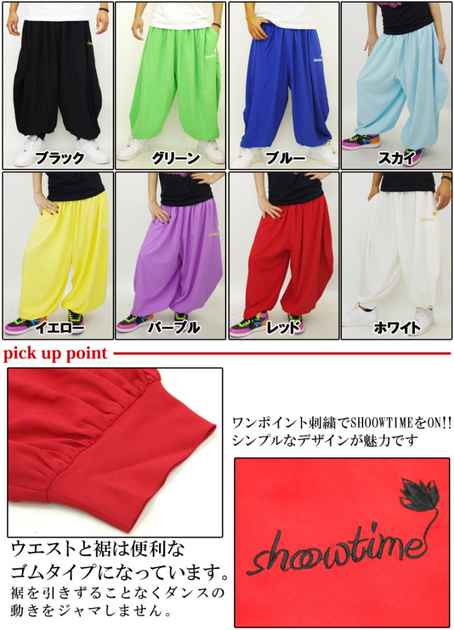 ストリートルックなデザインと「動きやすさ」を追求したアイテム展開で人気のストリートダンスウェアブランドSHOOWTIME(ショータイム)のアラジンパンツ。 エスニックダンサーを彷彿させるアラジンスタイルなゆったりとワイドなトレンド感のあるバルーンシルエットが個性的でオシャレなコーデを演出! サラリとした心地良い肌触りに加え、薄手で軽量でストレッチも効いた動きやすい生地を使ったリラックス感抜群な作り。 デイリーからアクティブまでこなせる今のトレンドにもピッタリなアイテムです。