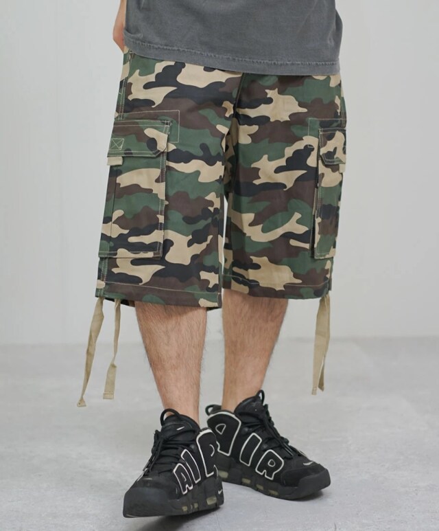 SHAKA WEAR シャカウェア カーゴ ショートパンツ ハーフパンツ 迷彩柄 メンズ ウェブベルト付き TWILL CARGO SHORTS グリーンカモ swdt004