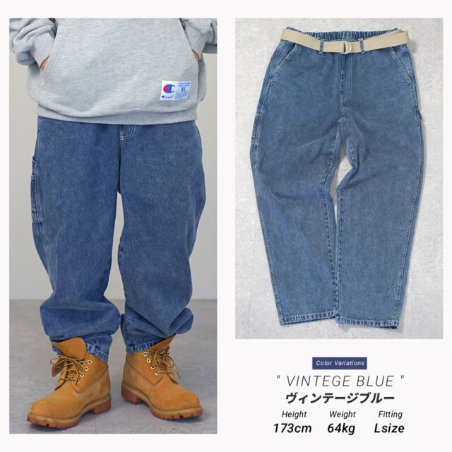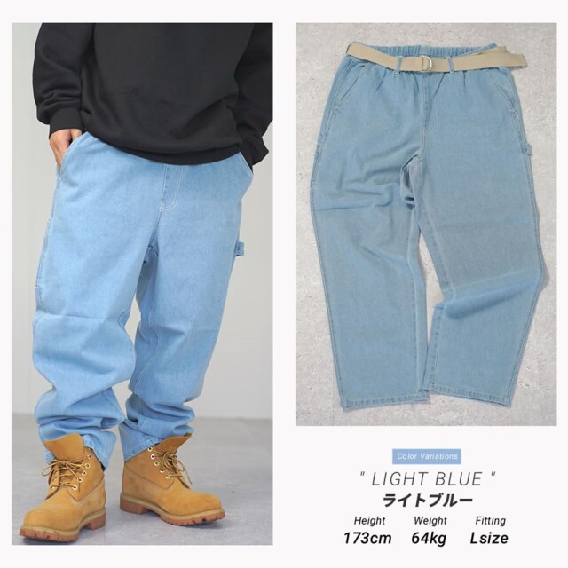 ペインターパンツ デニム メンズ ベルト付き ワイドパンツ バギーパンツ イージーパンツ アメカジ ワーク アウトドア thdt005