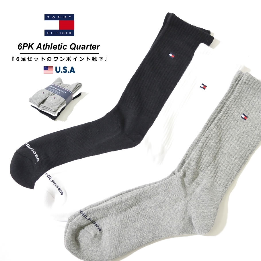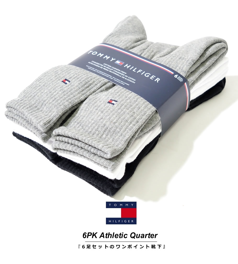 トミーヒルフィガー TOMMY HILFIGER クルーソックス メンズ 靴下 6足組 ブランド USAモデル 6PK ATHLETIC QUARTER THM211QT01004 tmat014