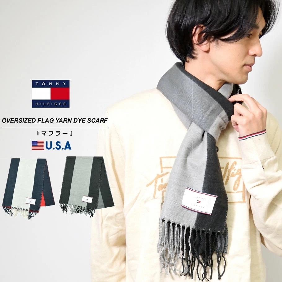 トミーヒルフィガー TOMMY HILFIGER マフラー スカーフ OVERSIZED FLAG YARN DYE SCARF メンズ レディース カジュアル ブランド USAモデル バレンタイン ギフト tmat020