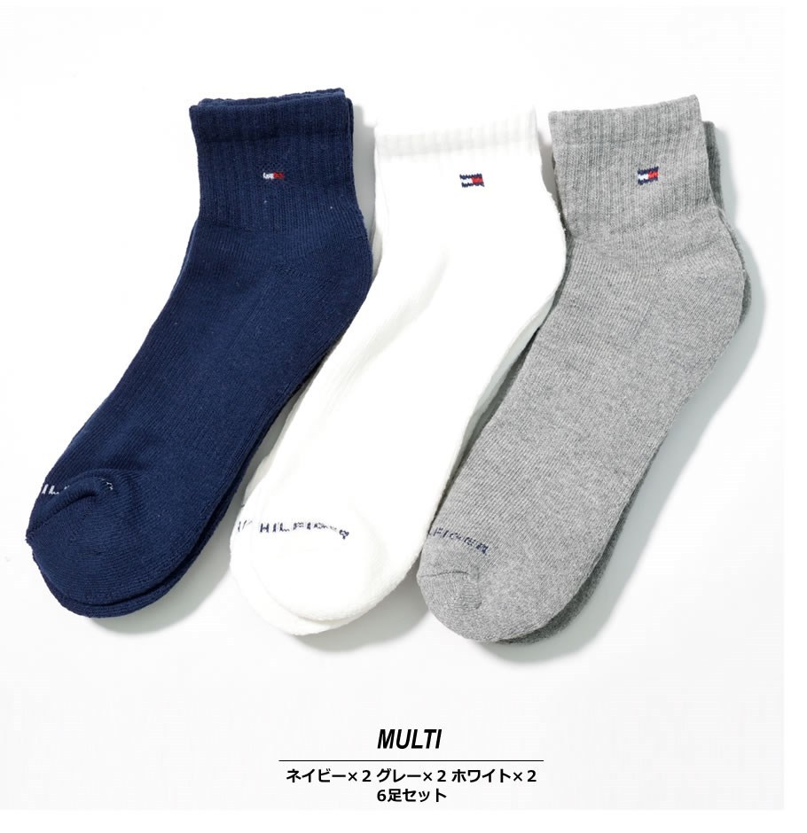 TOMMY HILFIGER トミーヒルフィガー クルーソックス 靴下 メンズ 6足組 6足セット おしゃれ ブランド 6PK SOLID ATHLETIC QUARTER USA企画 tmat033