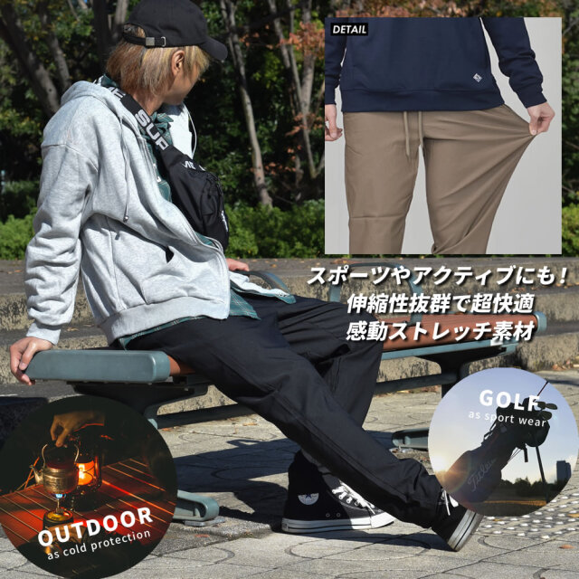 動きを邪魔しない快適な穿き心地の超ストレッチ素材を使ったチノパンの裏地に全面裏起毛素材を使うことで温もりをプラスしたストレッチ暖パンツ。